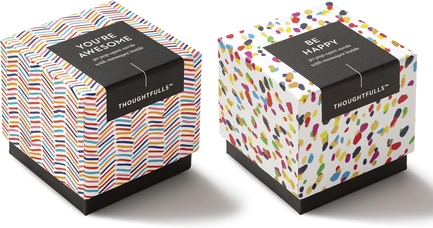 THEME – SHARE HAPPY: Included in this pack are 2 boxes of ThoughtFulls - 1 box of You're Awesome and 1 box of Be Happy. Every box features 30 cards, each with a unique quote to spark joy and celebrate the good things. Share with friends, family, loved ones, coworkers, or anyone who could use a ray of sunshine.