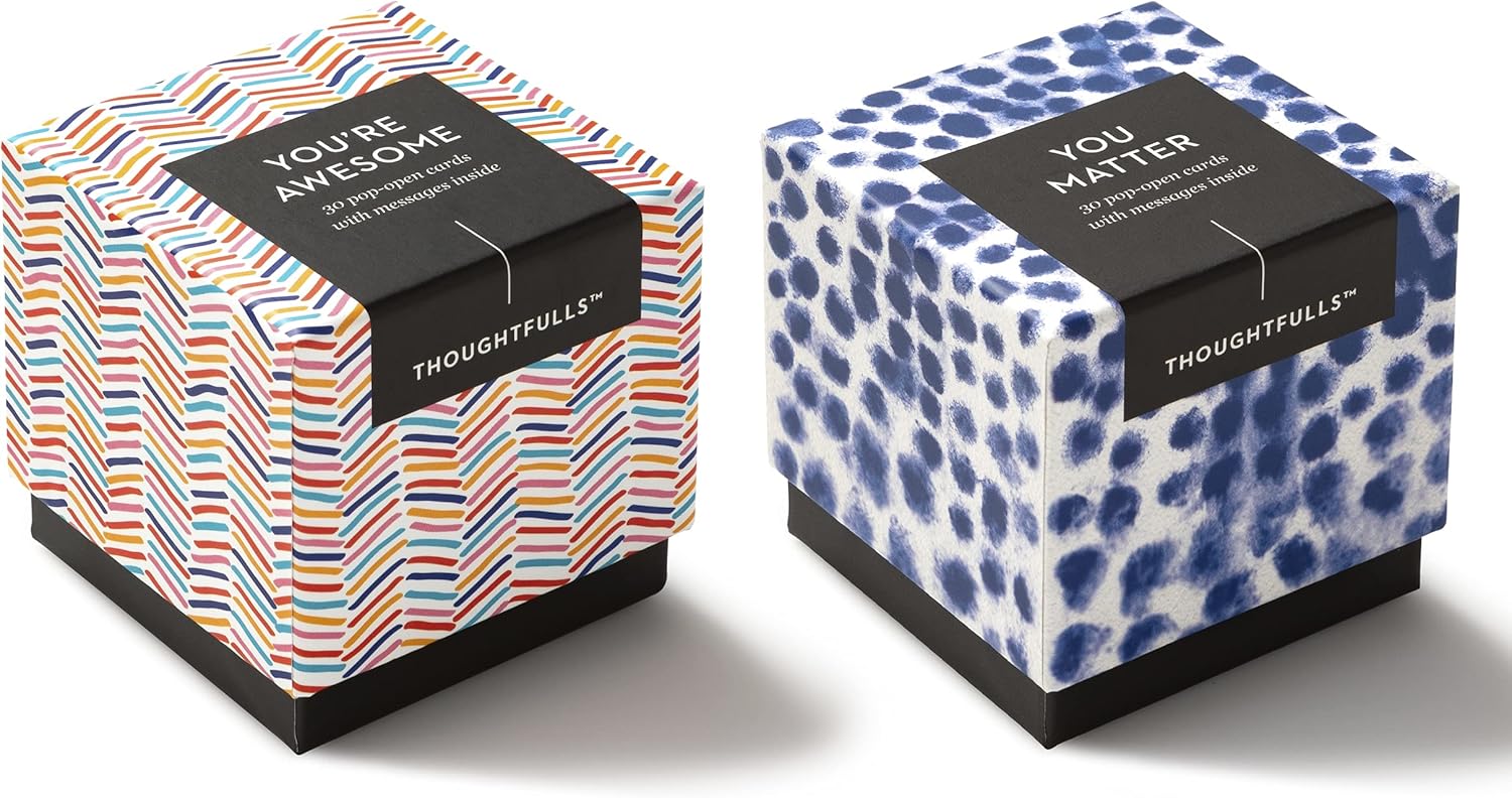 THEME – YOU’RE ONE OF A KIND: Included in this pack are 2 boxes of ThoughtFulls - 1 box of You're Awesome and 1 box of You Matter. Every box features 30 cards, each with a unique quote to shine a light on someone who’s one of a kind. Share with friends, family, loved ones, coworkers, or anyone who could use a reminder of how incredible they truly are.