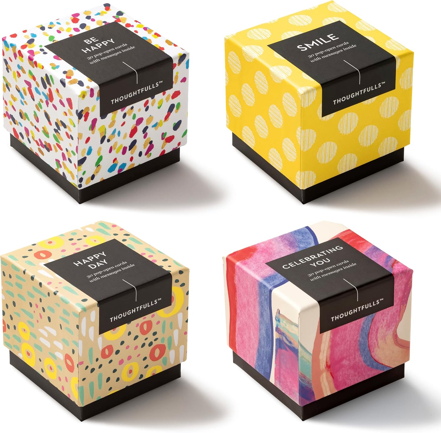 Compendium ThoughtFulls Pop-Open Cards — 4-Pack of Celebrating You, Be Happy, Happy Day, Smile — 120 Pop-Open Cards, Each with a Different Message Inside