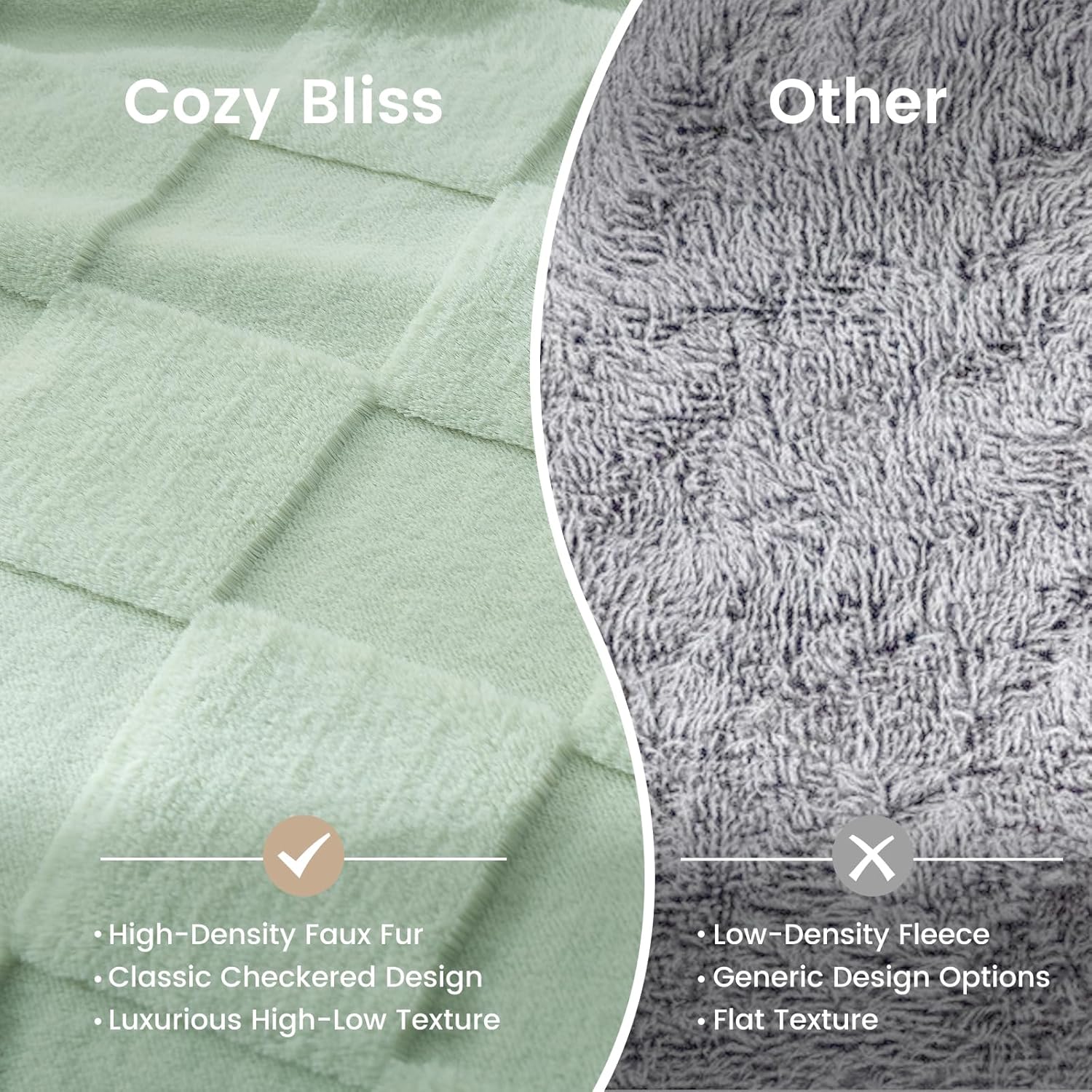 Cozy Bliss Checkered White Faux Rabbit Fur Throw Blanket, Soft Fuzzy Fluffy Minky Cream Furry Blankets for Couch, Bed (Sage Green, King(108" x 90")