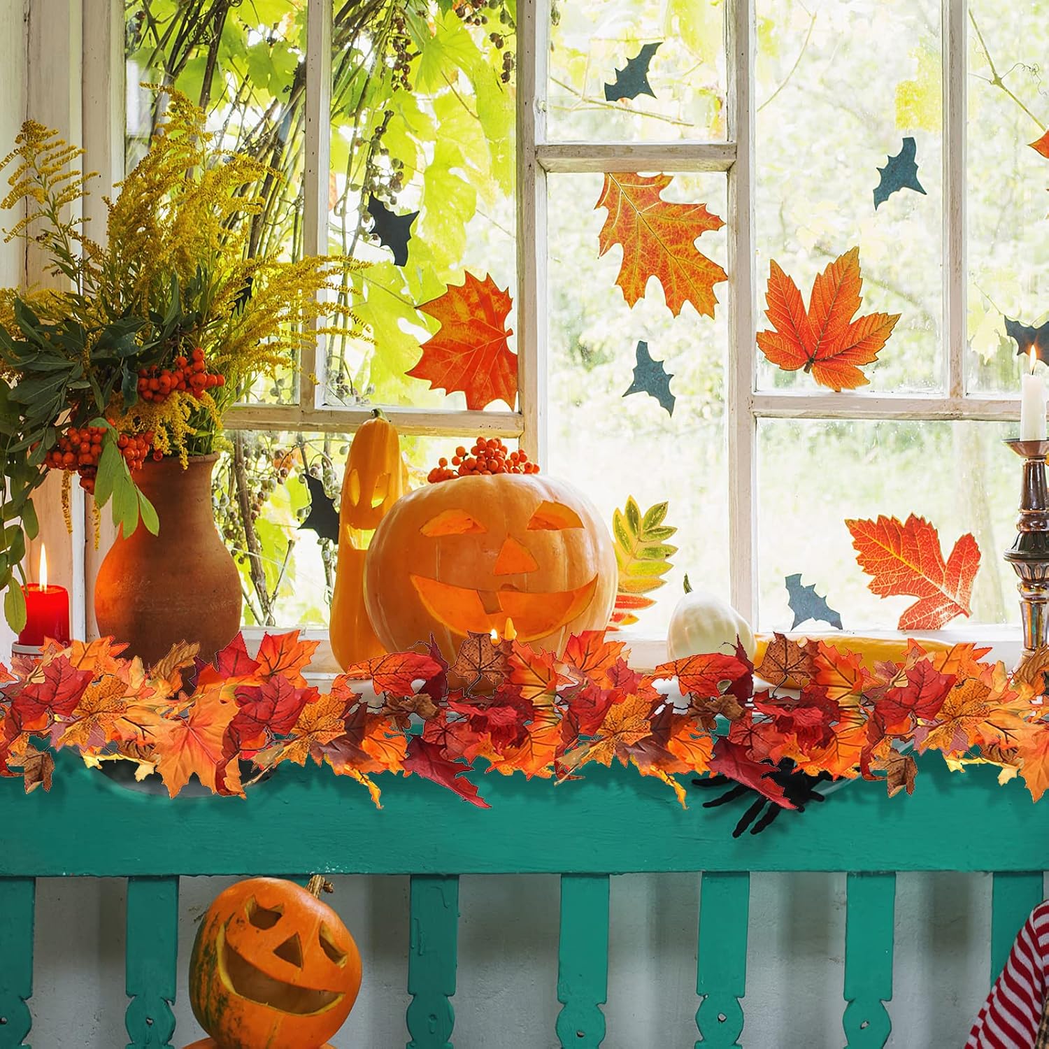 DURABLE and REUSABLE: Sturdy and texture clear fall leaves garland are made of fabric, stems are made of plastic, but looks like real fresh preserved fall Garland which is lightweight,no wilting, fading or get easily damaged. and adapt to all kinds of weather. fall maple leaves does not require any sort of special care.