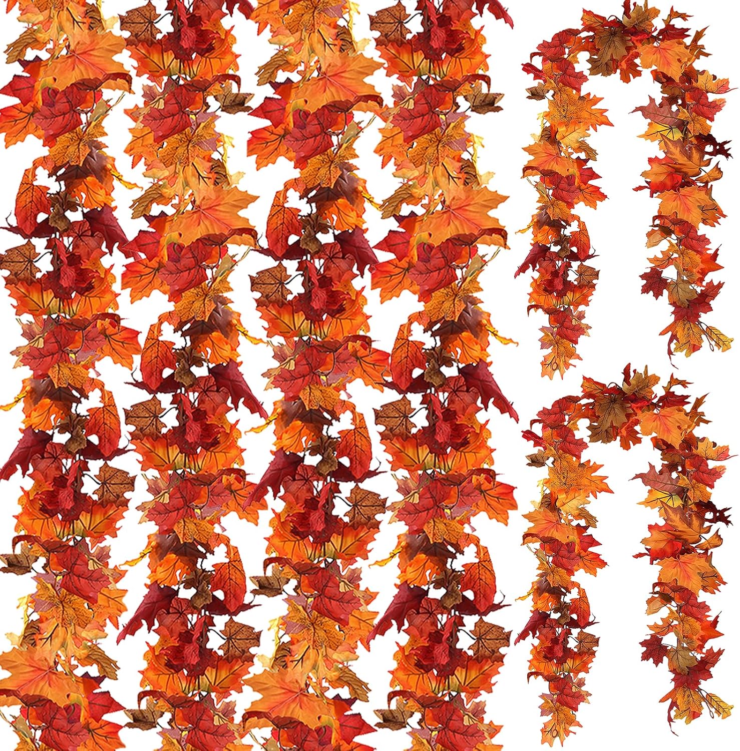 🍁SIZE🎃:Our artificial maple leaf garlands made from Silk,Plastic,High Quality,Each garland plants 5.9 FT Long,total 35.4 Ft,Including 6 pieces.