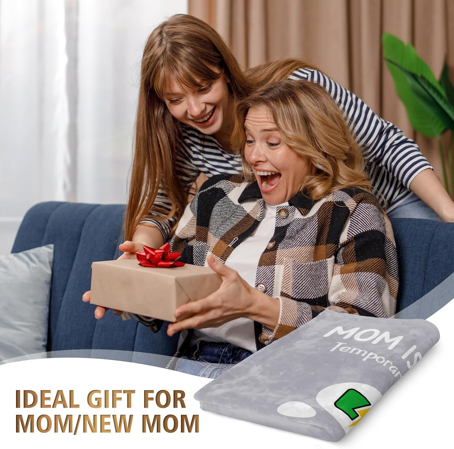 Craftique Gifts for Mom Birthday Christmas- Funny Soft Mom is Charging Blanket- New Moms Gifts for Women, Practical Blanket Throw for Napping Travel, 60”×50”