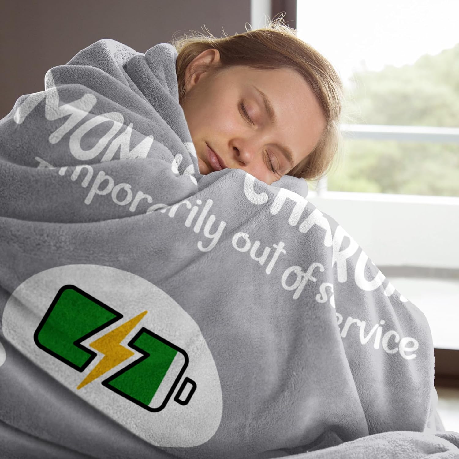 Craftique Gifts for Mom Birthday Christmas- Funny Soft Mom is Charging Blanket- New Moms Gifts for Women, Practical Blanket Throw for Napping Travel, 80”×60”