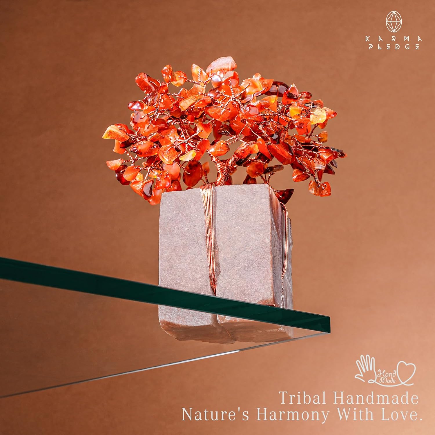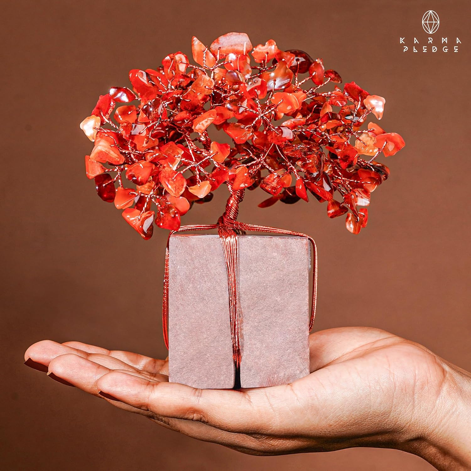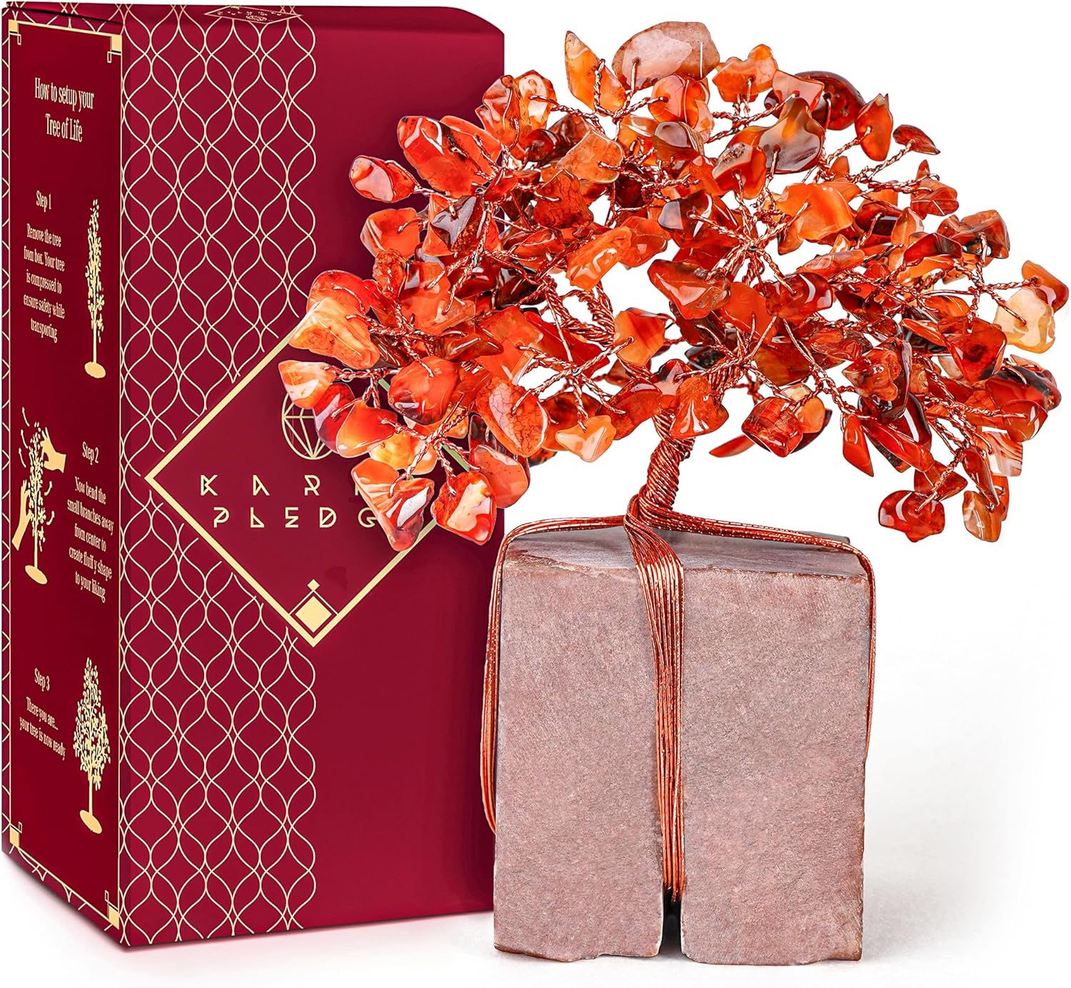 Crystal Tree for Birthday Gifts for Women, Handmade Raw Crystal Base Carnelian Chakra Healing Crystal Tree of Life for Positive Energy, Money, Good Luck, Christmas Décor, Home and Office Decor