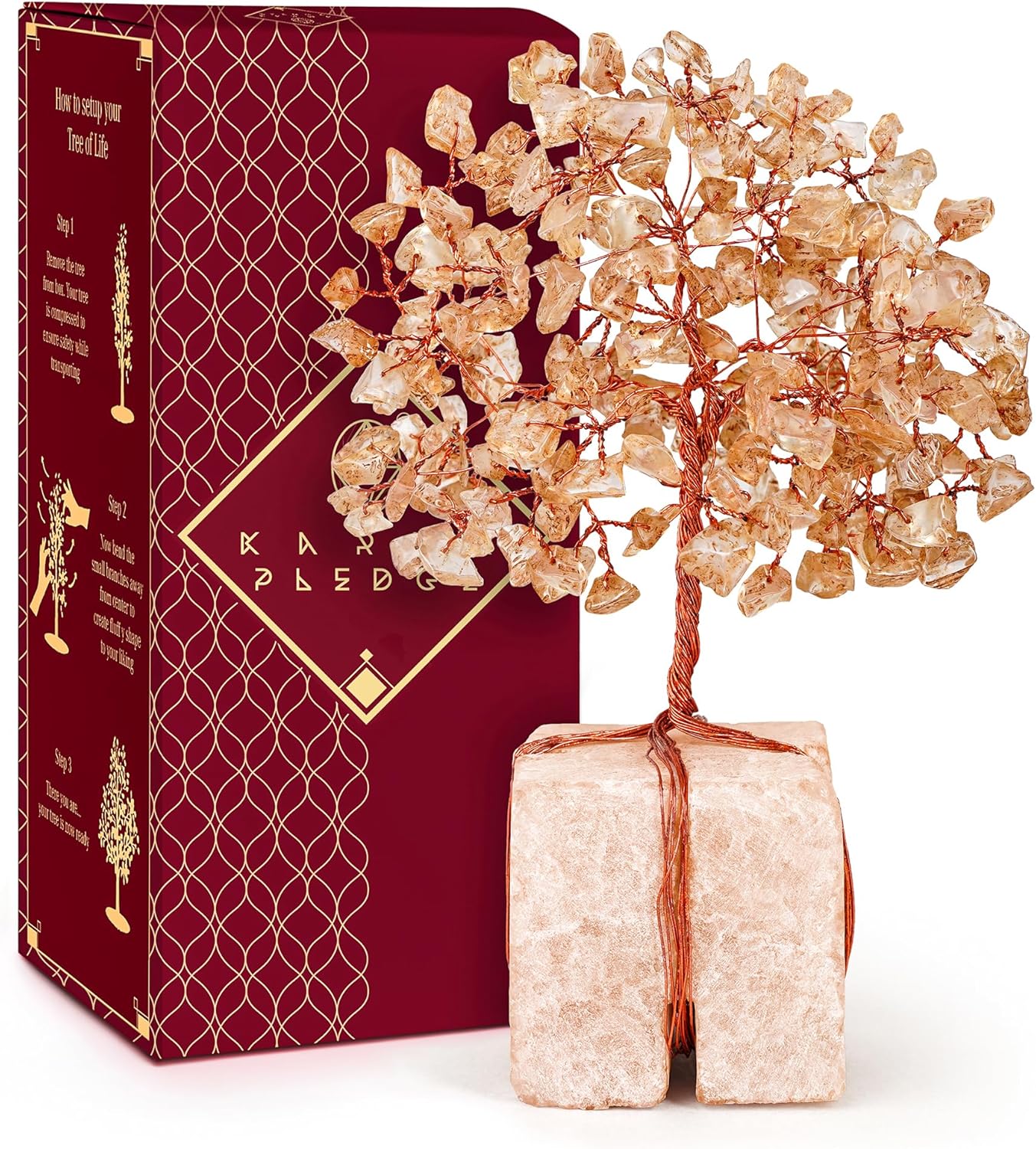 Crystal Tree for Birthday Gifts for Women, Handmade Raw Crystal Base Citrine Chakra Healing Crystal Tree of Life for Positive Energy, Money, Good Luck, Christmas Décor, Home and Office Decor