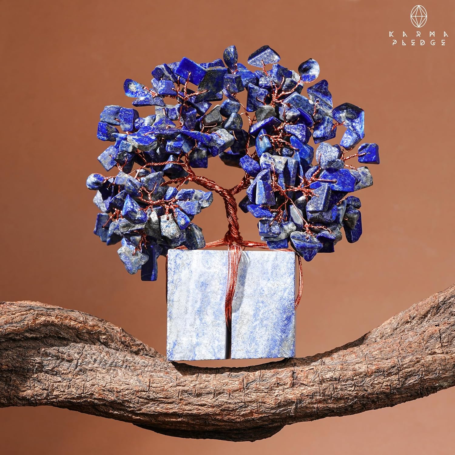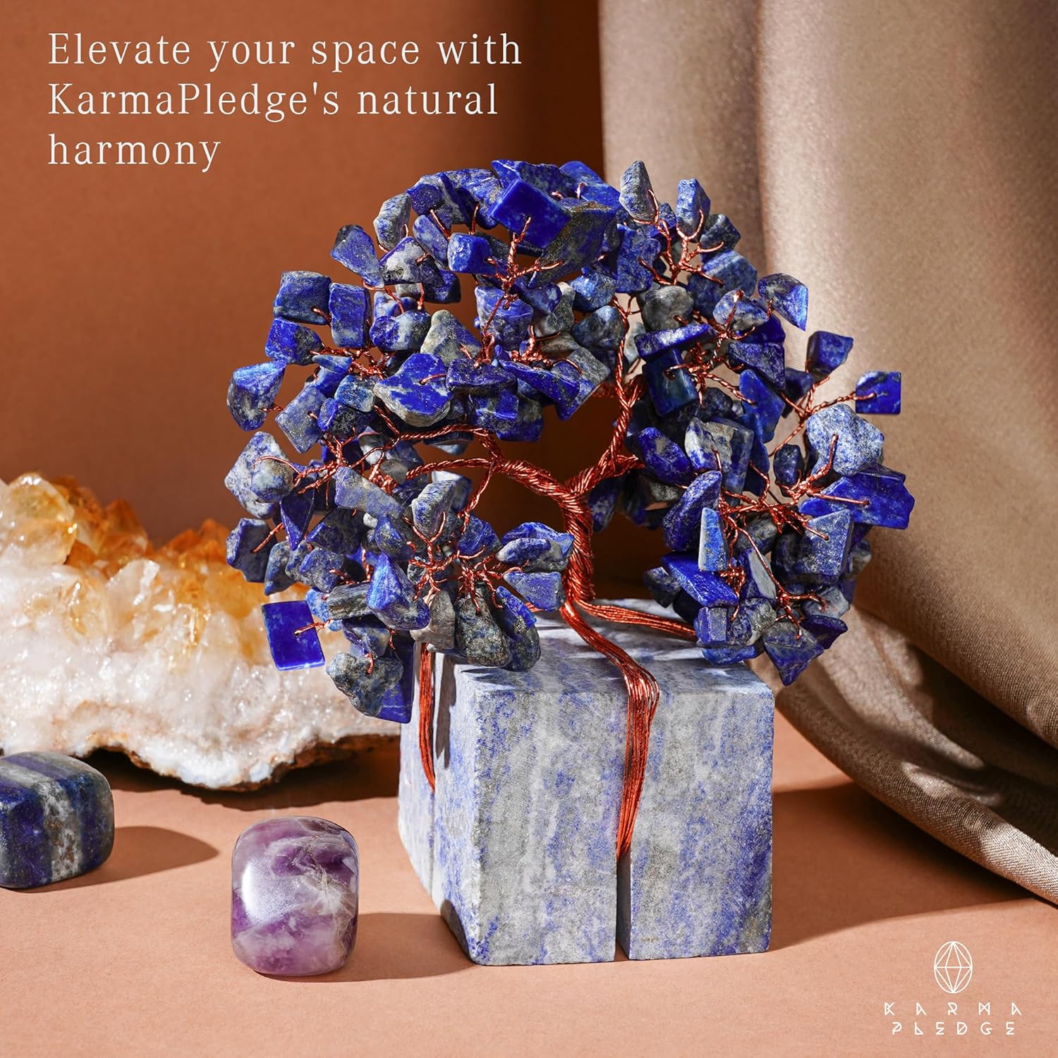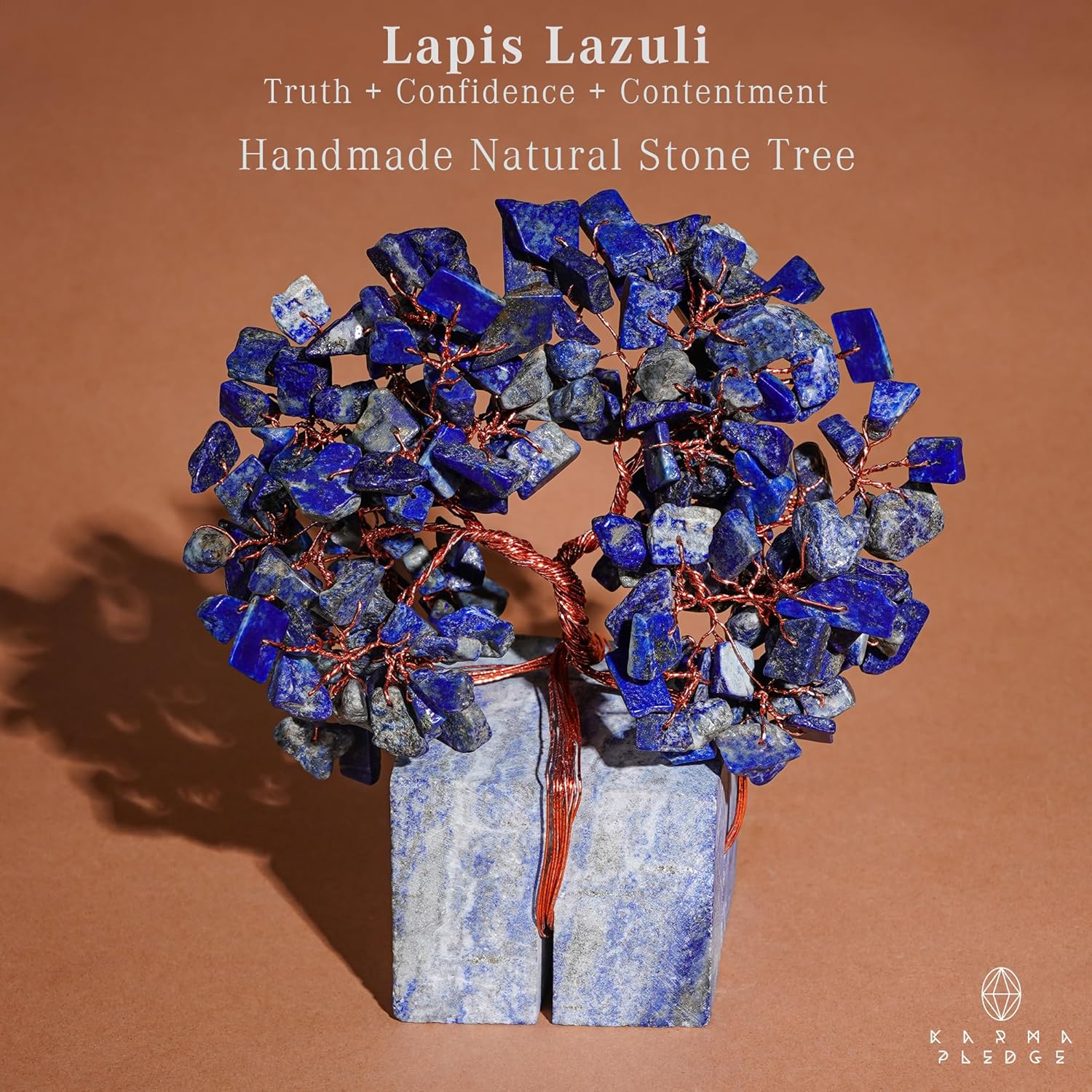 Crystal Tree for Birthday Gifts for Women, Handmade Raw Crystal Base Lapis Lazuli Chakra Healing Crystal Tree of Life for Positive Energy, Money, Good Luck, Christmas Décor, Home and Office Decor