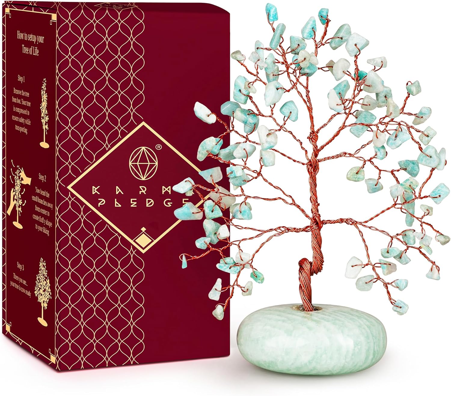 Crystal Tree of Life Home and Office Feng Shui Decor, Amazonite Healing Crystal Handmade Bonsai Tree for Positive Energy, Good Luck, Money, Christmas Decor, Birthday Gifts for Women, Mom