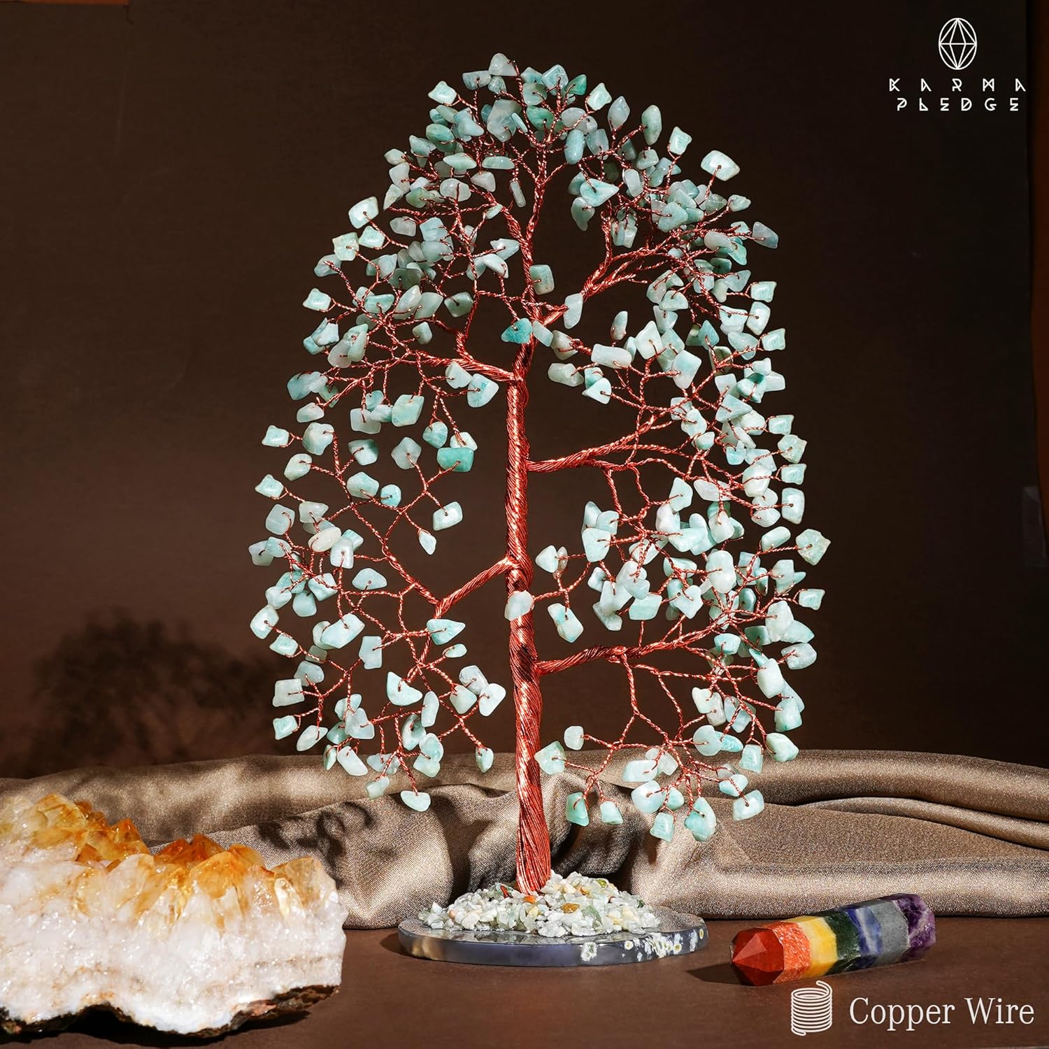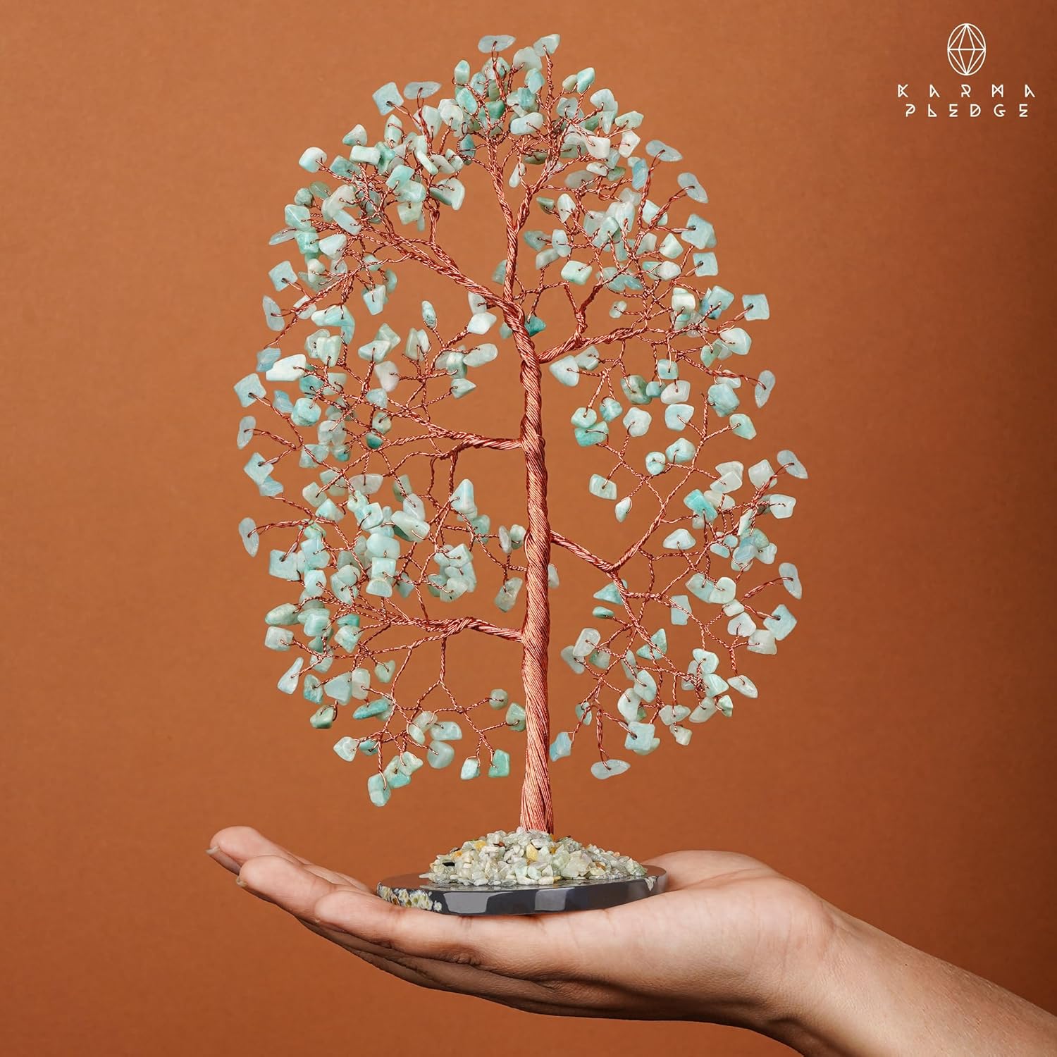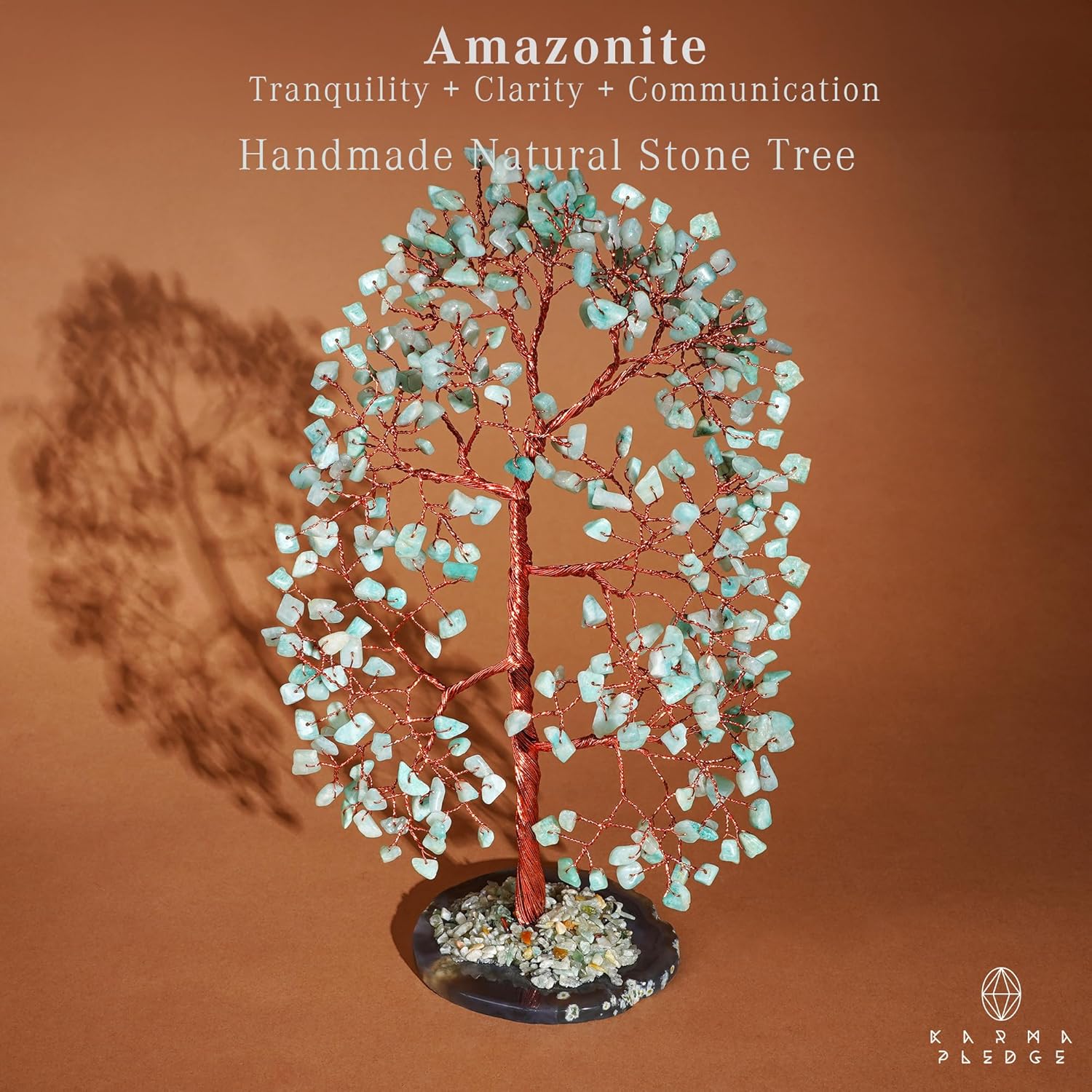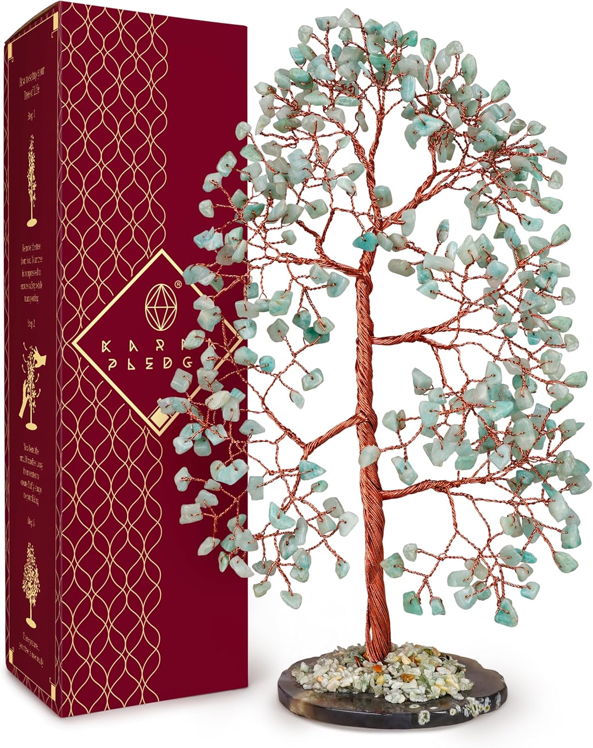 Crystal Trees for Home and Office Decoration, Amazonite Chakra Healing Crystals Feng Shui Handmade Trees for Positive Energy, Money, Good Luck, Christmas Decor, Birthday Gifts for Women, Mom