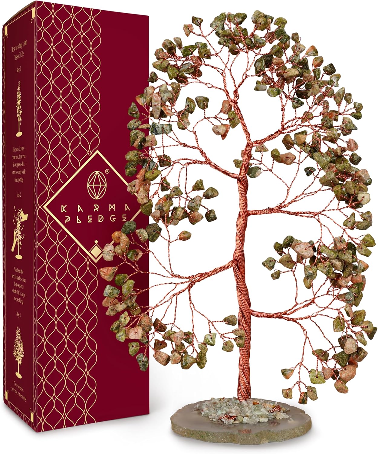 Crystal Trees for Home and Office Decoration, Unakite Chakra Healing Crystals Feng Shui Handmade Trees for Positive Energy, Money, Good Luck, Christmas Decor, Birthday Gifts for Women, Mom