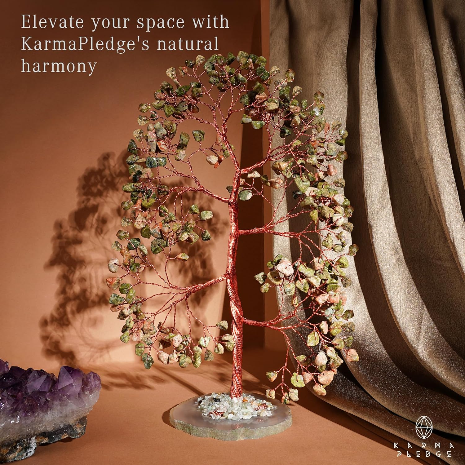 CRYSTAL TREE: Our Crystal Trees is designed to promote balance, harmony, and alignment of the chakra system . This create a peaceful and nurturing environment. Helps to replace negative emotions with positive, returning the wearer to that place of pure love and balance.