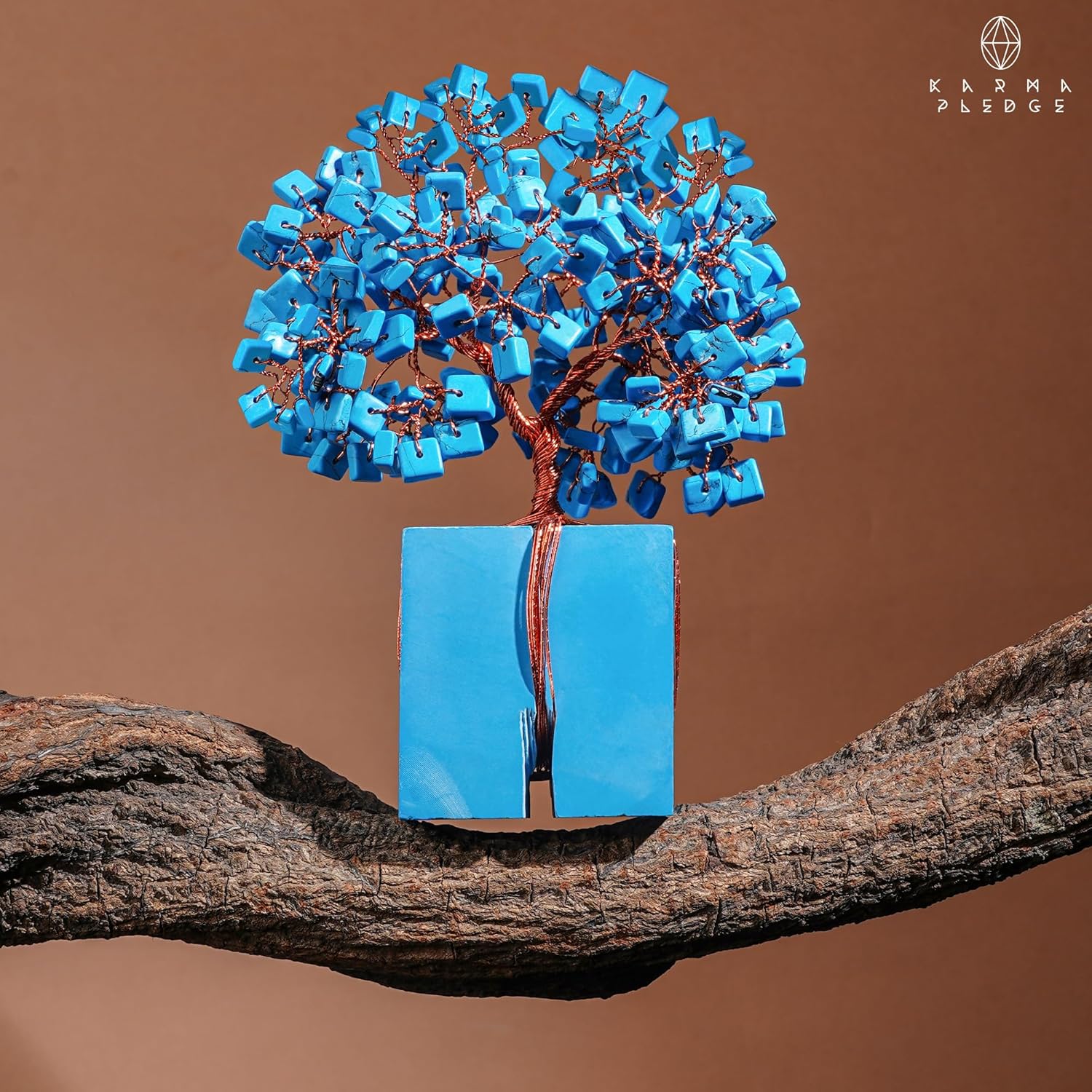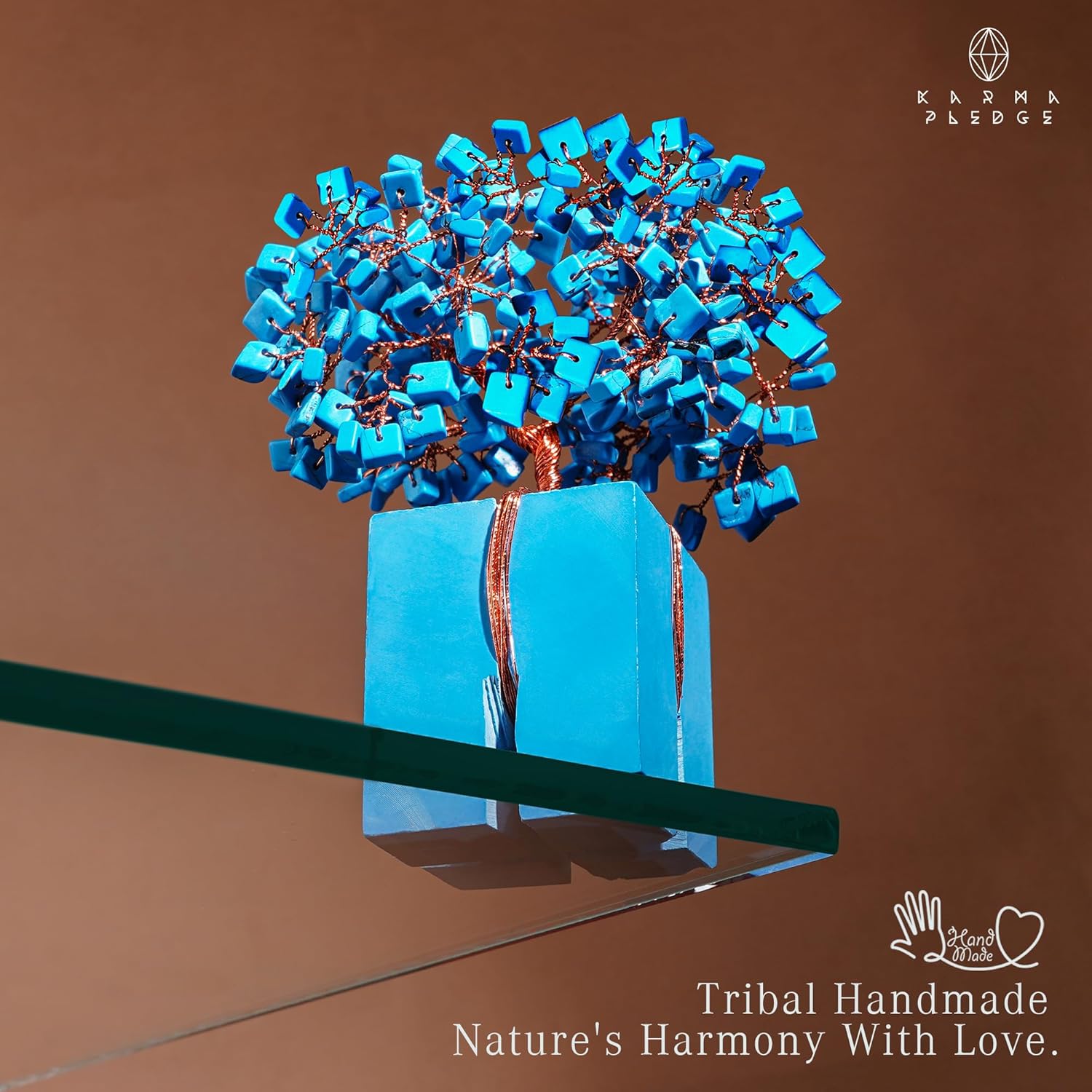 Crystal Treesof Life Feng Shui Décor for Home and Office, Turquoise Chakra Healing Crystal Handmade Tree for Positive Energy, Money, Good Luck, Christmas Décor, Birthday Gifts for Women