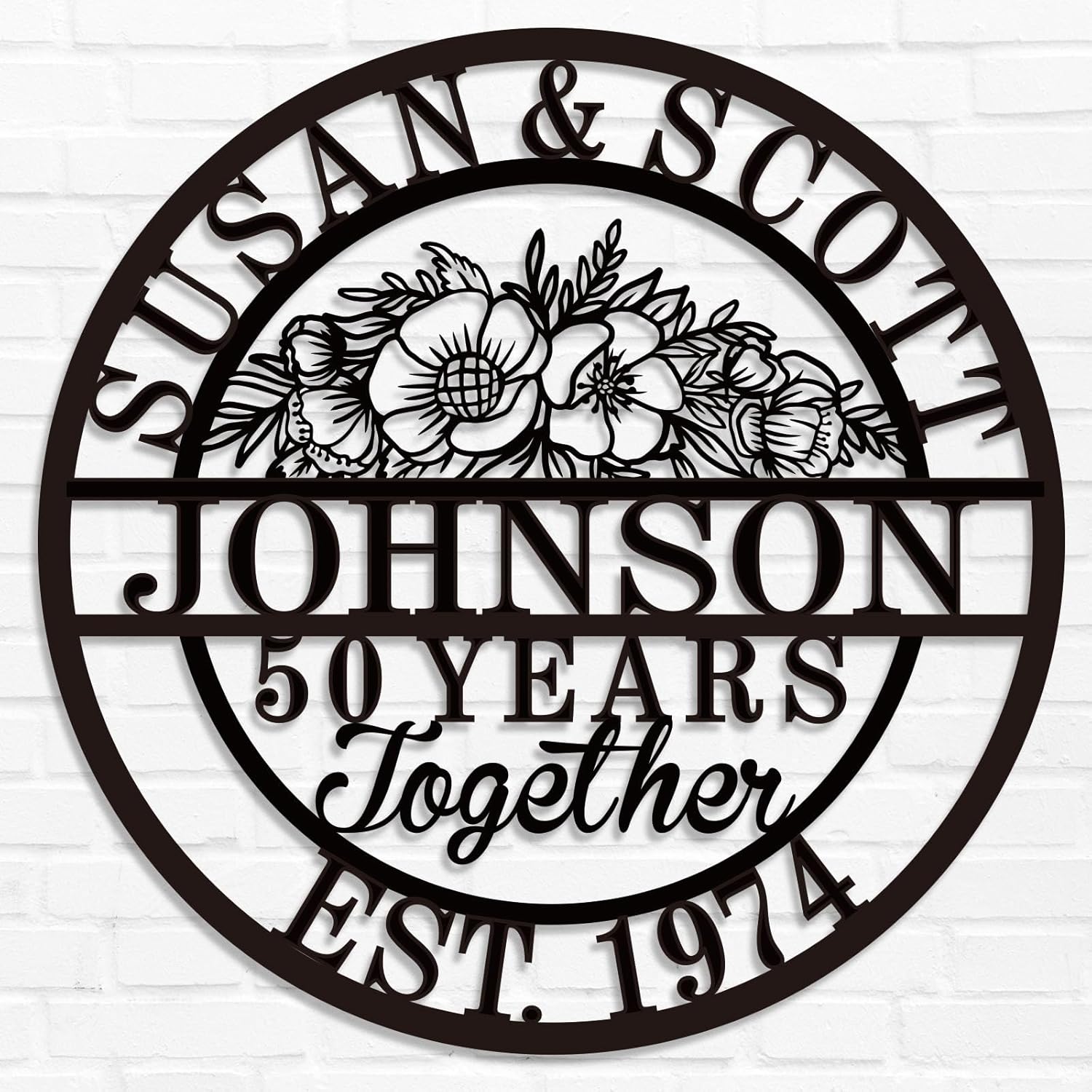 Custom 50th/40th/60th/70th/30th/1-99 Years Wedding Anniversary Sign Gifts for Couples Parents, Custom Metal Monogram Sign Personalized Family Name Signs (Flowers)