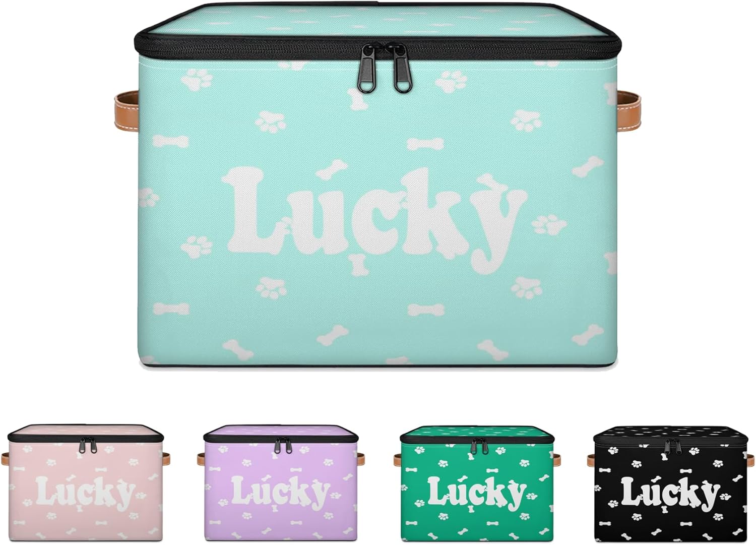 Custom Storage Basket with Name, Personalized Storage Bins with Zipper Lid, Foldable Fabric Storage Box Large capacity with Handle Green