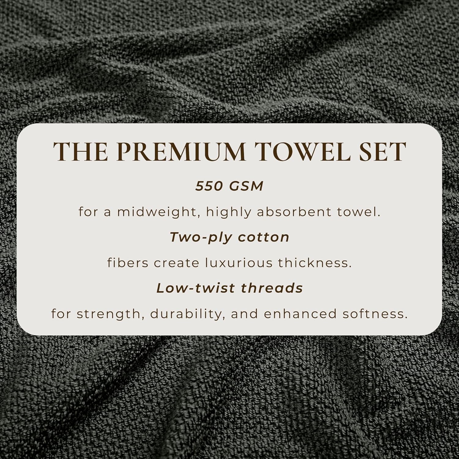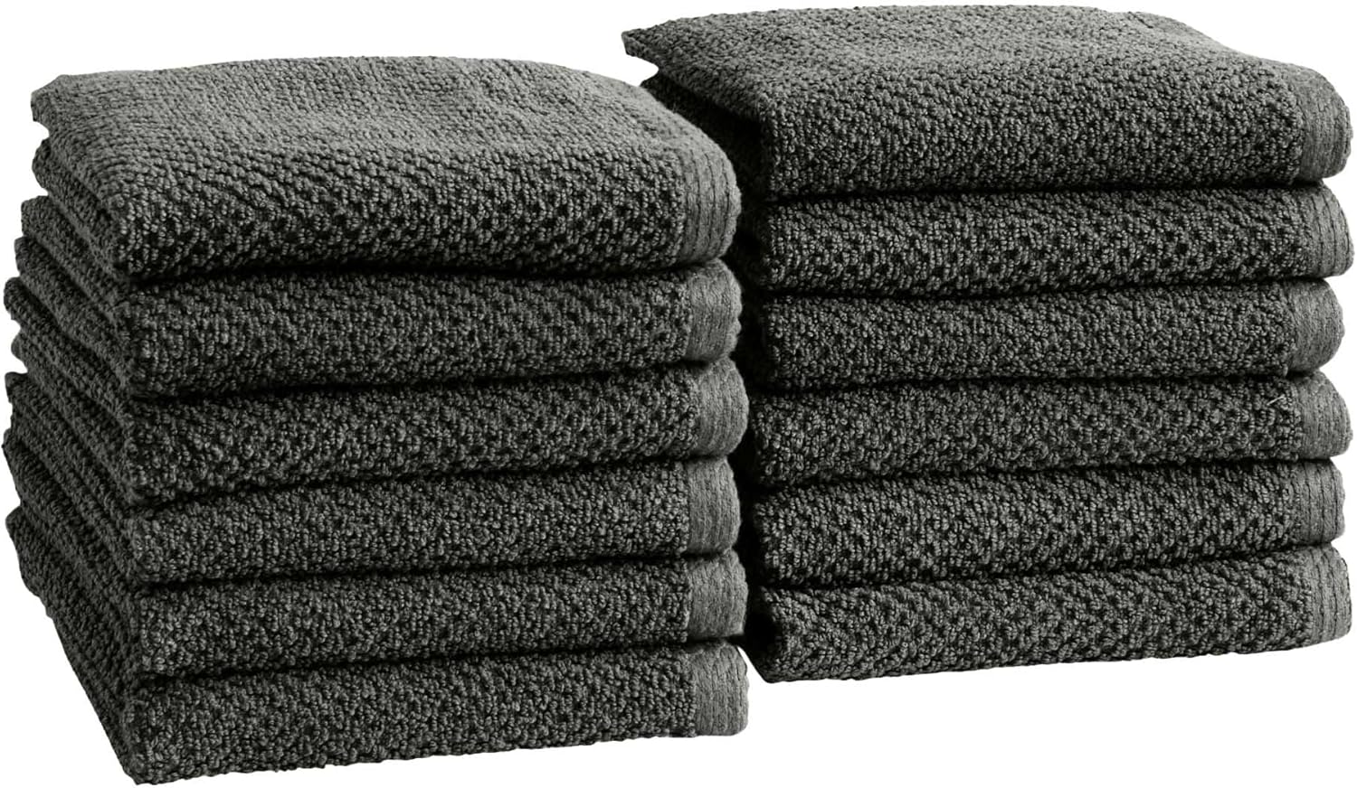 Dark Grey Washcloth- 100% Cotton 12-Pack 13x13 Wash Cloth - Absorbent, Quick-Drying, Durable Face Towels for Bathroom Decor - Low-Twist, Two-Ply Fibers (Midnight)