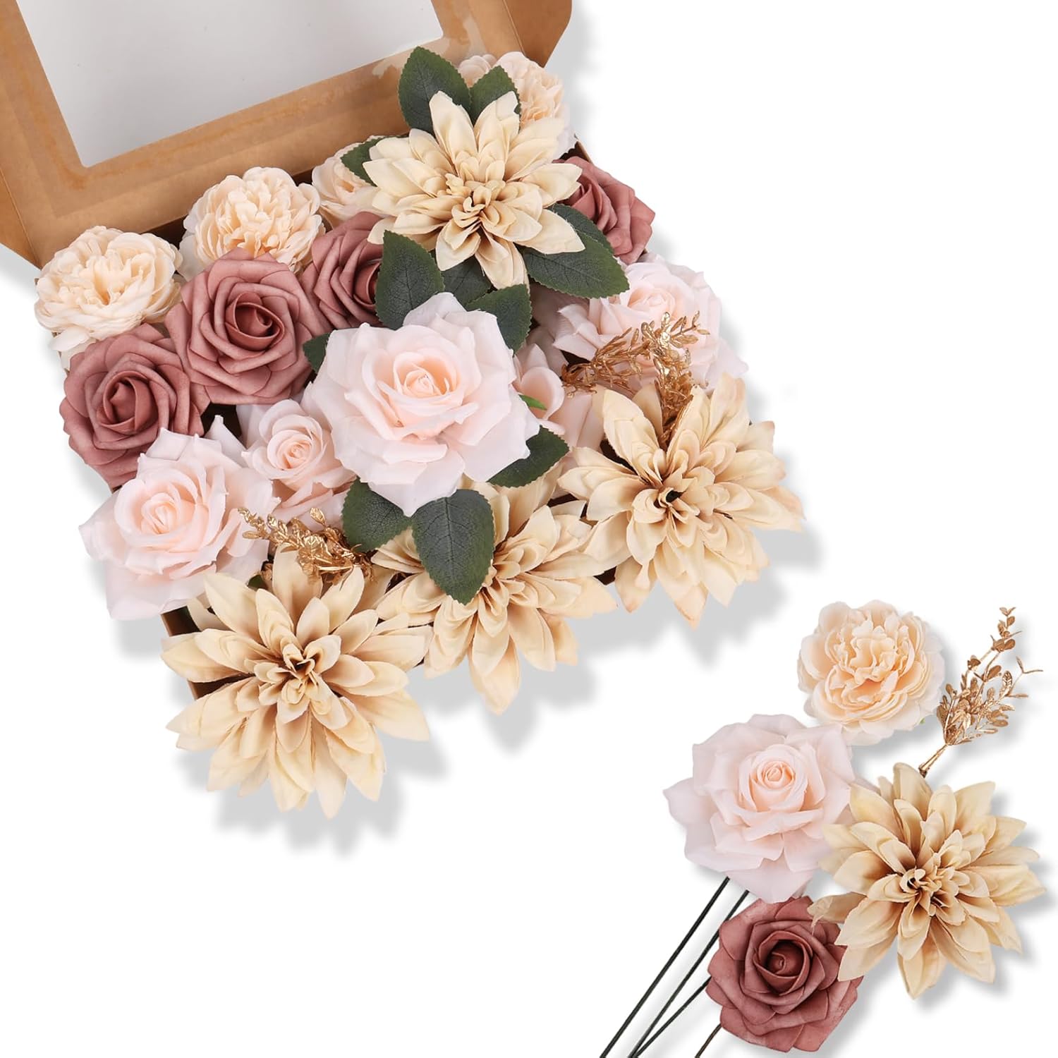 註Material and packing - All flowers and leaves are handmade from 100% silk.It is environmentally friendly and does not fade easily. It is easier to store and use for a long time than real flowers. Main materials include 20pcs artificial silk flowers + Some green leaves縲Xhich gives them the look of fresh roses and touches soft.