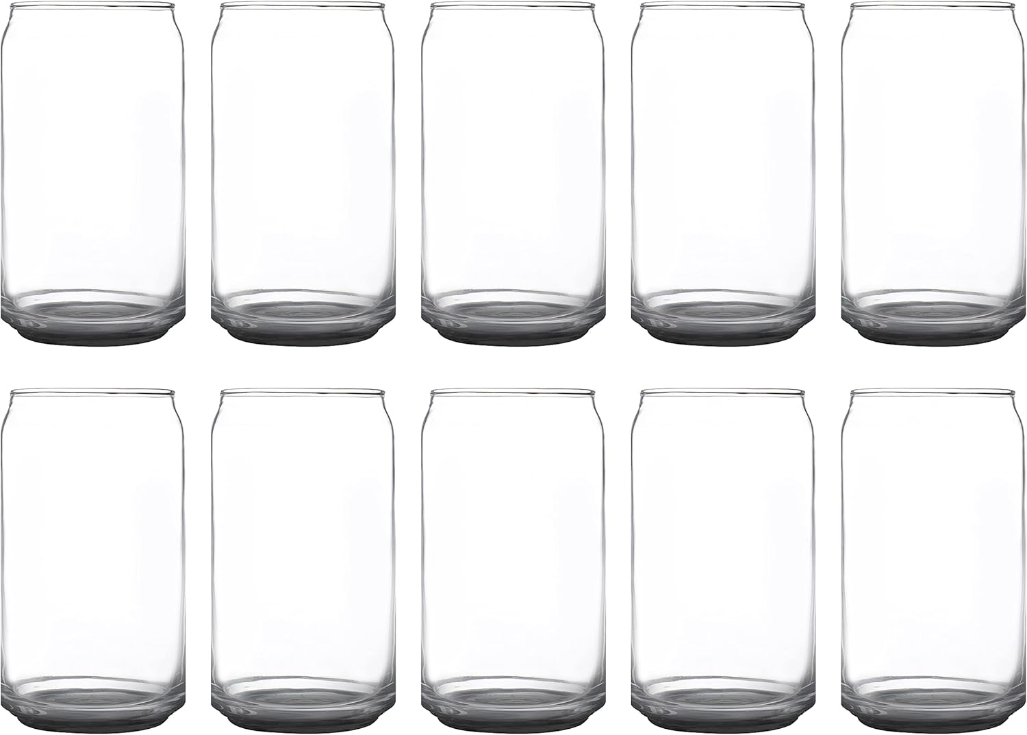 DISCOUNT PROMOS Beer Can Glasses Set of 10, 16 oz. Pint Sized, Soda Can Shape, Glassware, Black