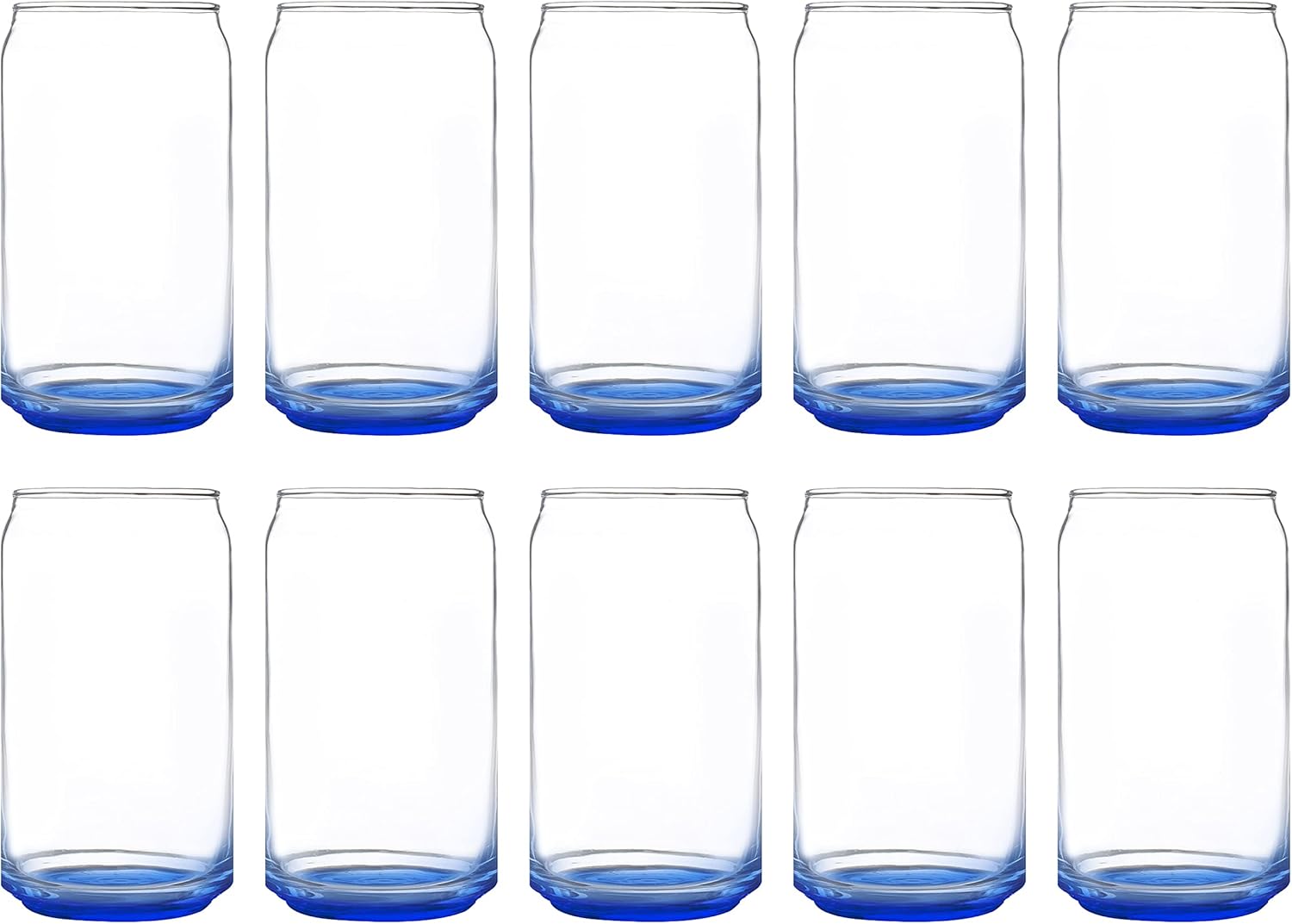 DISCOUNT PROMOS Beer Can Glasses Set of 10, 16 oz. Pint Sized, Soda Can Shape, Glassware, Blue