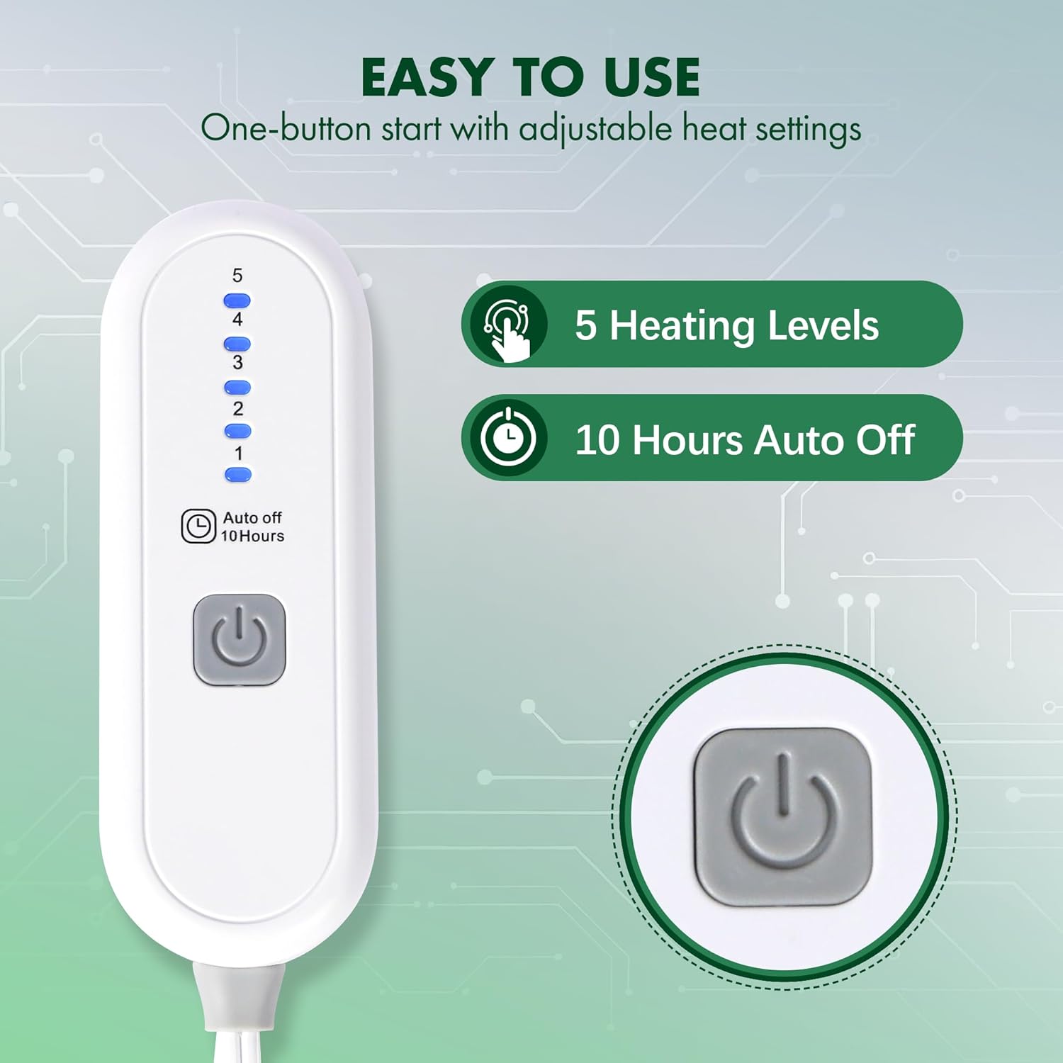 Cut Energy Bills Without Sacrificing Warmth – Our green heated blanket twin provides the same toasty warmth as a space heater but at a fraction of the energy cost. This washable heated blanket is designed for effortless machine cleaning and long-lasting reuse, maintaining cozy performance wash after wash