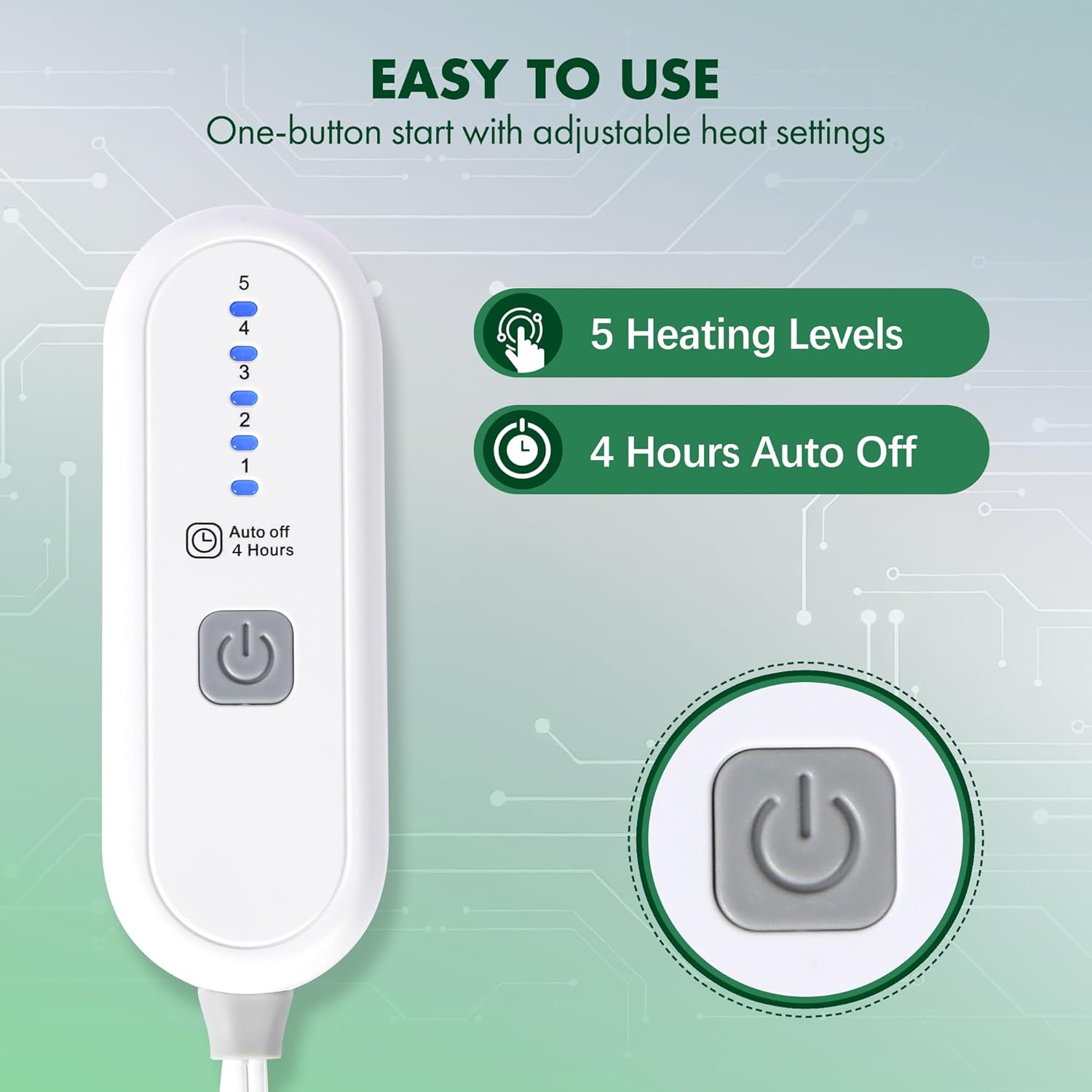 Cut Energy Bills Without Sacrificing Warmth – Our green heated blanket provides the same toasty warmth as a space heater but at a fraction of the energy cost. This washable heated blanket is designed for effortless machine cleaning and long-lasting reuse, maintaining cozy performance wash after wash
