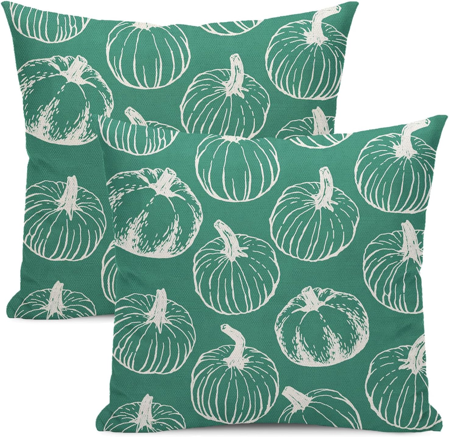 Fall Pillow Covers 18 x 18 Set of 2 Teal Pumpkin Throw Pillow Covers Autumn Harvest Thanksgiving Decorative Pillowcase Farmhouse Home Decoration Linen Cushion Case For Couch Sofa Outdoor Decor