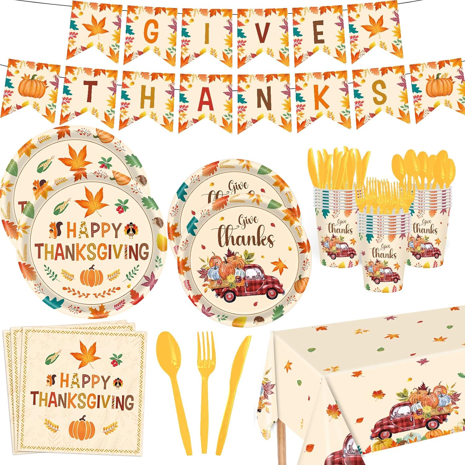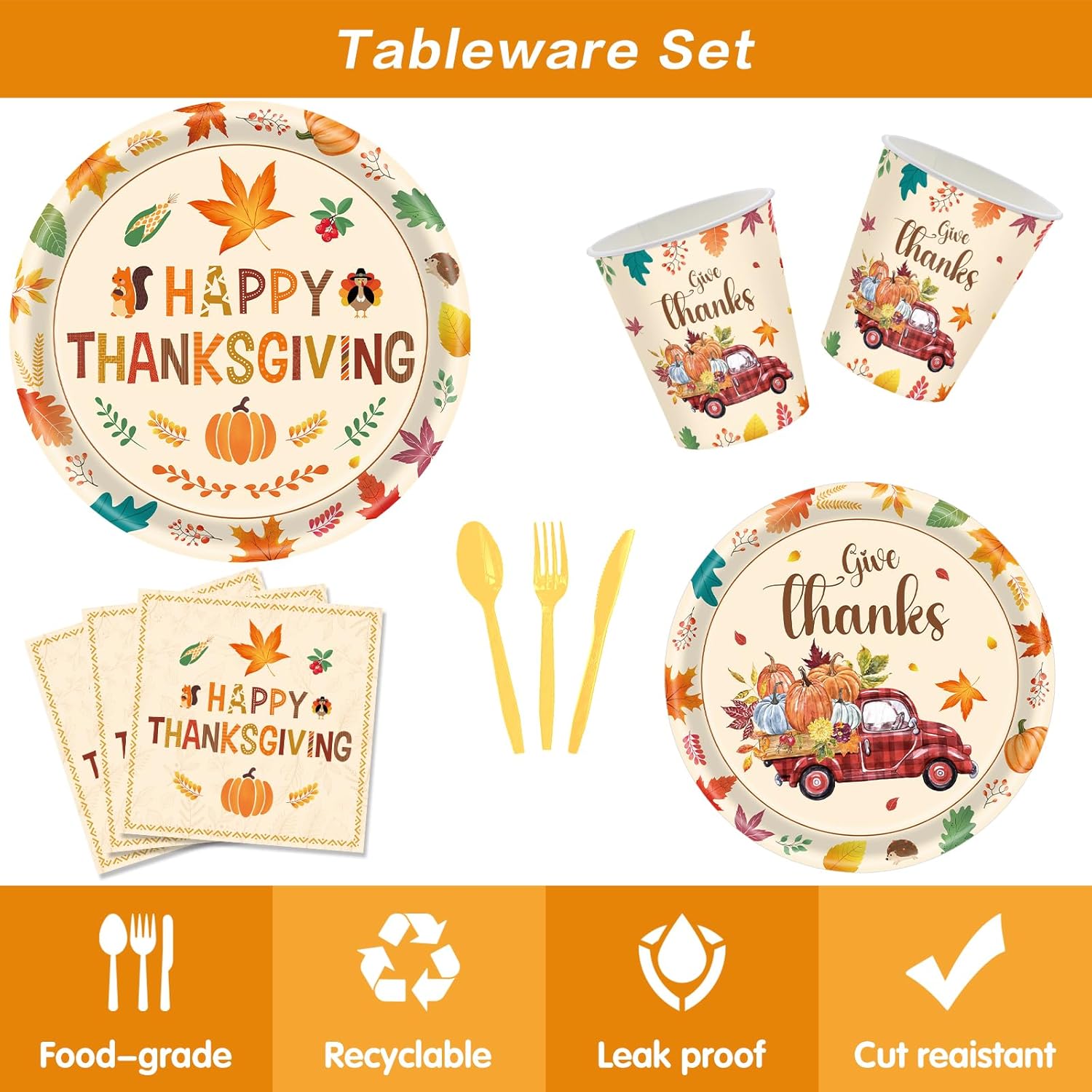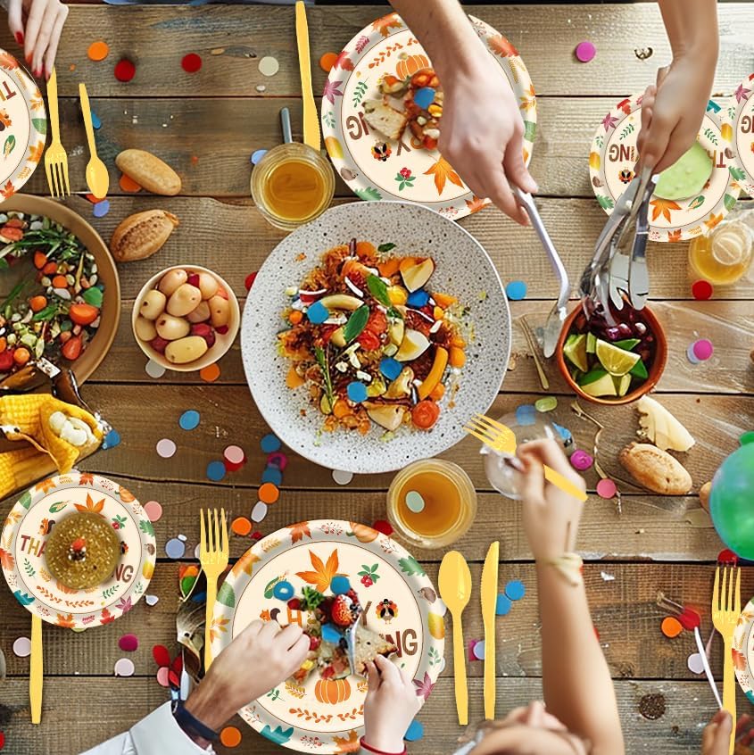 【Easy to Use】Our fall paper plates and napkins party supplies tableware set are suitable for both indoor and outdoor use. After the party, just throw it away,which save you much time in cleaning and have more time for other planning activities.You can take the thanksgiving dinnerware sets anywhere, very convenient.