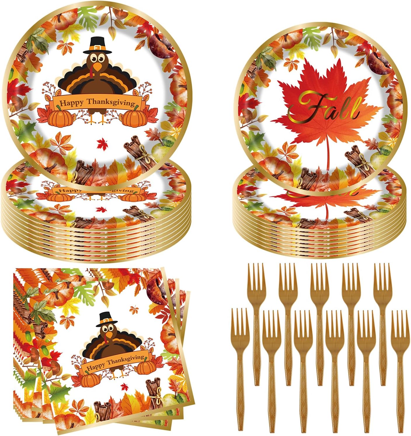 Thanksgiving Party Decoration Set: You will receive totally 96 piece fall theme party supplies, including 24 Happy Thanksgiving plate 9inch,24 pieces fall plate 7inch,24 pieces Thanksgiving napkins and 24pcs forks,The fall party favors are enough to decorate your party