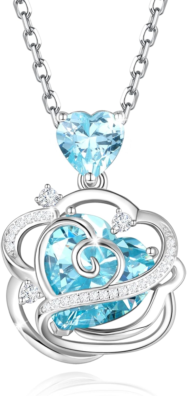 FANCIME Thornless Pulse Birthstone Necklace for Women Sterling Silver Rose Pendant Fine Jewelry Gemstone Birthday Christmas Gifts for Wife Her
