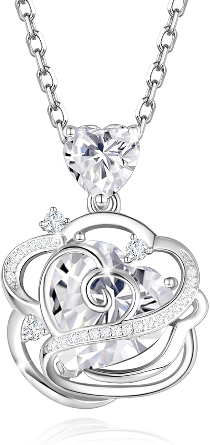 FANCIME Thornless Pulse Birthstone Necklace for Women Sterling Silver Rose Pendant Fine Jewelry Gemstone Birthday Christmas Gifts for Wife Her