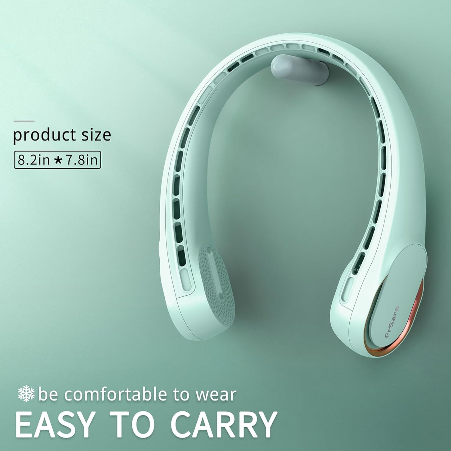 FrSara Neck Fan,Personal Fans for Your Neck, Adjustable, 360° Cooling, Super Quiet, No Blade Fan Design, No Hair Twisting, Even Air Volume On Both Sides, Non-Slip, Short Charging, Long Use Time