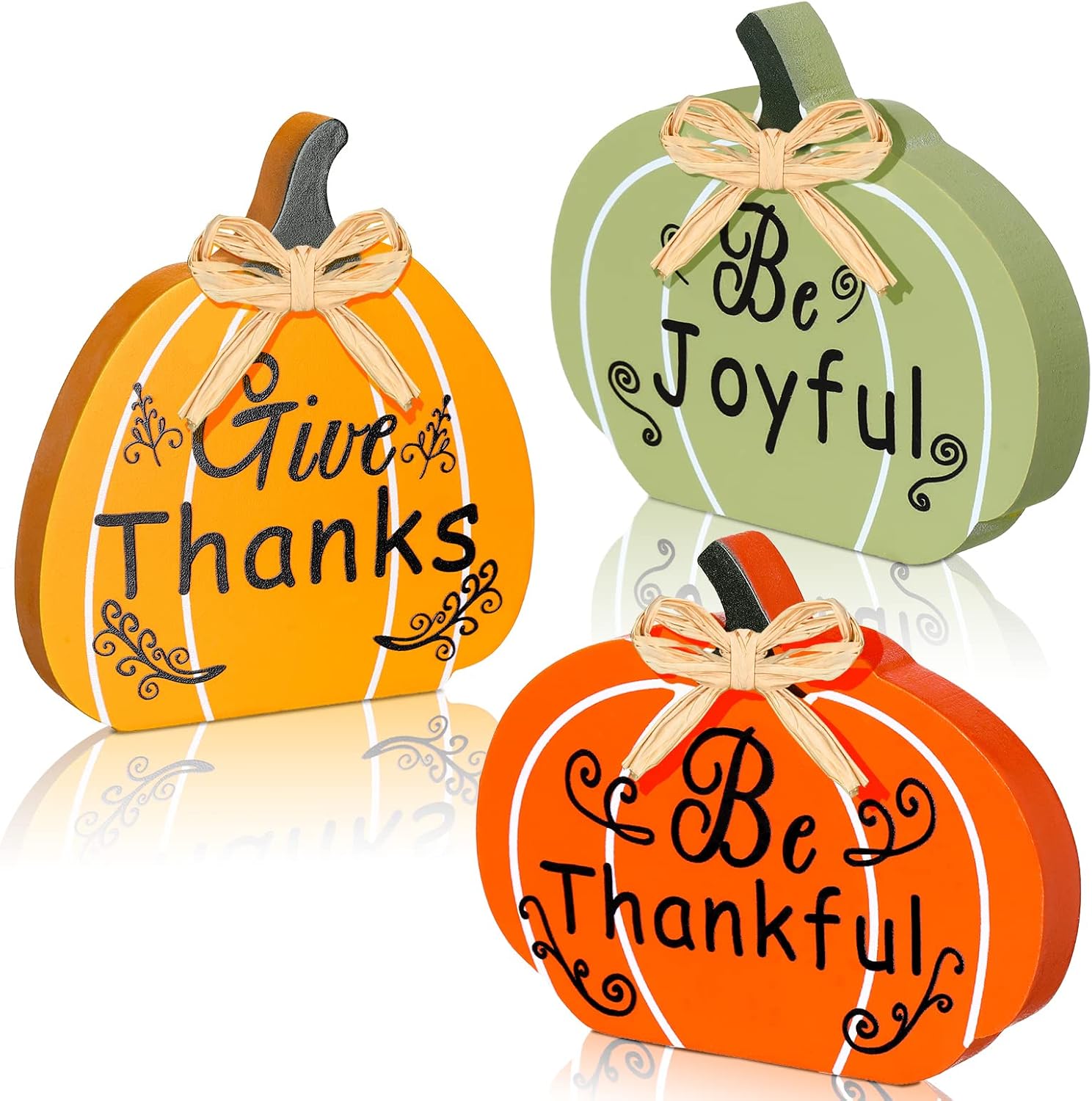 Pumpkin Theme: fall pumpkins decor is pumpkin themed, with realistic shapes, bright and attractive in colors, and it features warm words, like [be grateful], [be joyful], full of flavor of Thanksgiving and fall, easy to remind your family of the heart warming events of the year