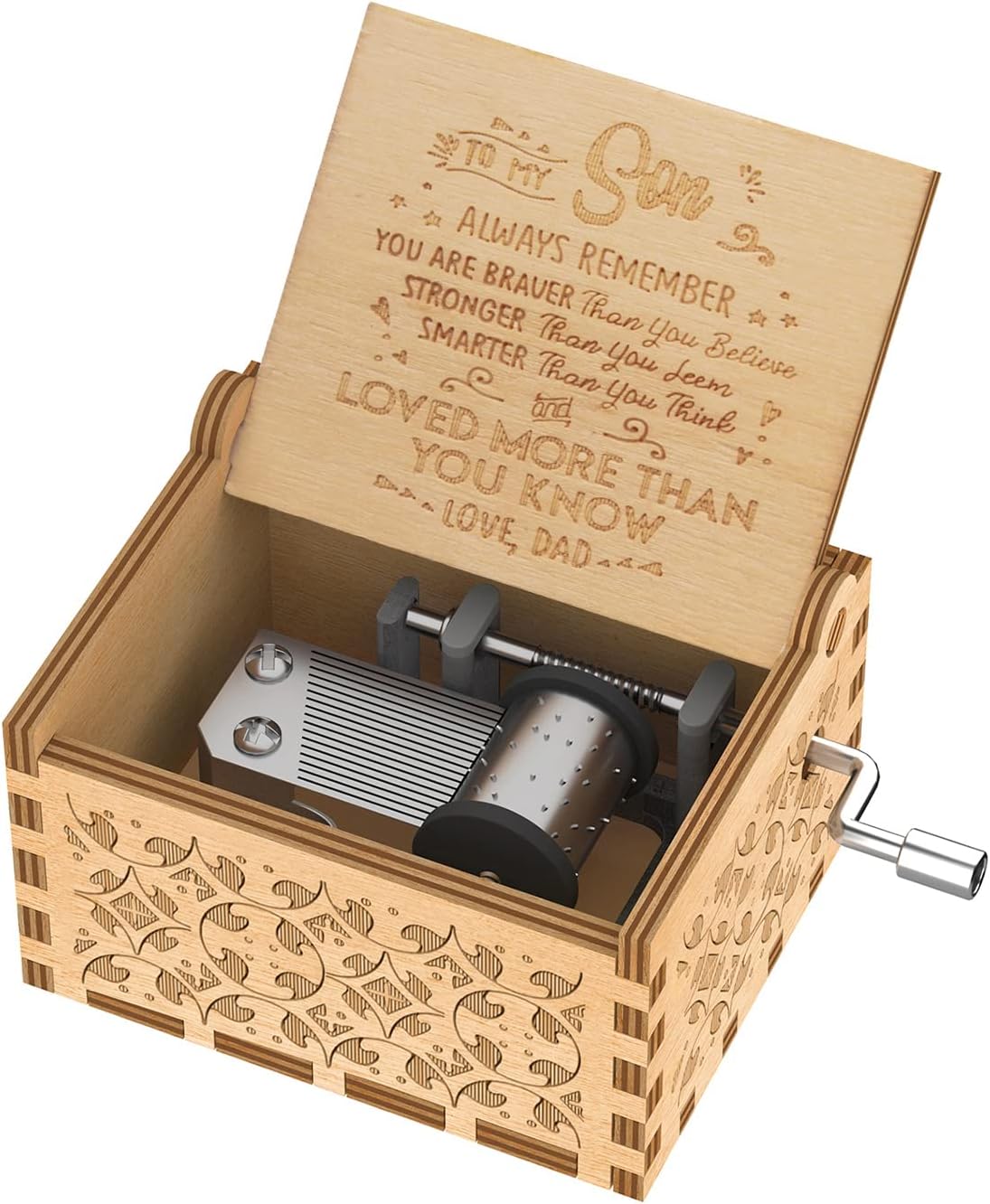 Gifts for Son from Dad, Wooden Music Box, Dad to Son Gifts, Suitable for Birthday/Christmas/Keepsake