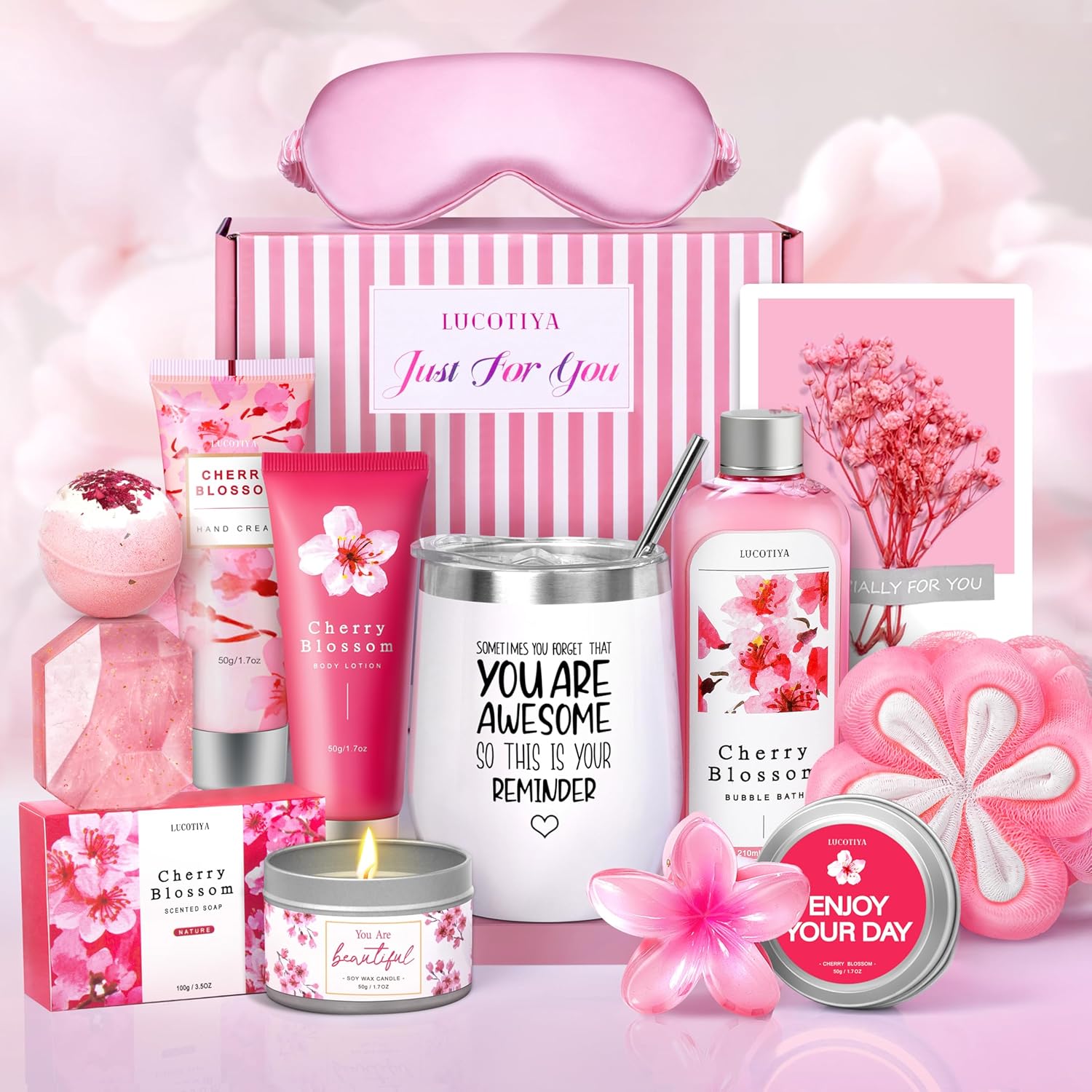 Gifts for Women Birthday Gifts, Spa Gifts Set- 10 Pcs Christmas Valentine's Mother's Day Gifts and Cherry Blossoms Self Care Package Gifts Women, Relaxing Gifts Basket