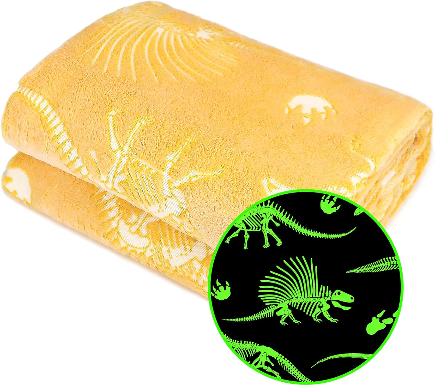 FLEECE BLANKET THROW - this glow in the dark blanket is made of soft flannel fabric. you will feel dinosaur blanket additional warmth and comfort in bed, blanket soft silky smooth to touch, cozy fleece blanket is super soft, durable, warm and lightweight. super soft plush throw will providing soft comfort for all kids and adults.