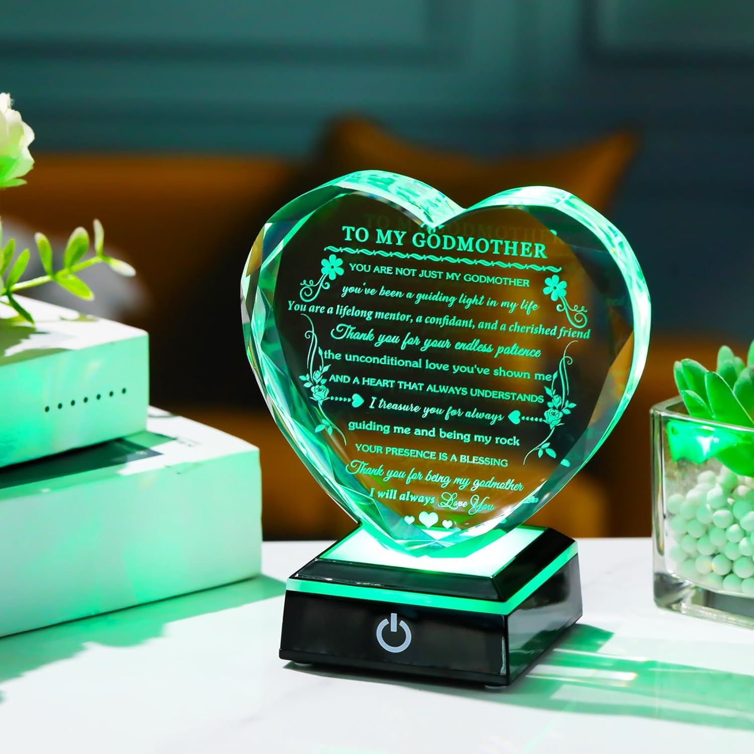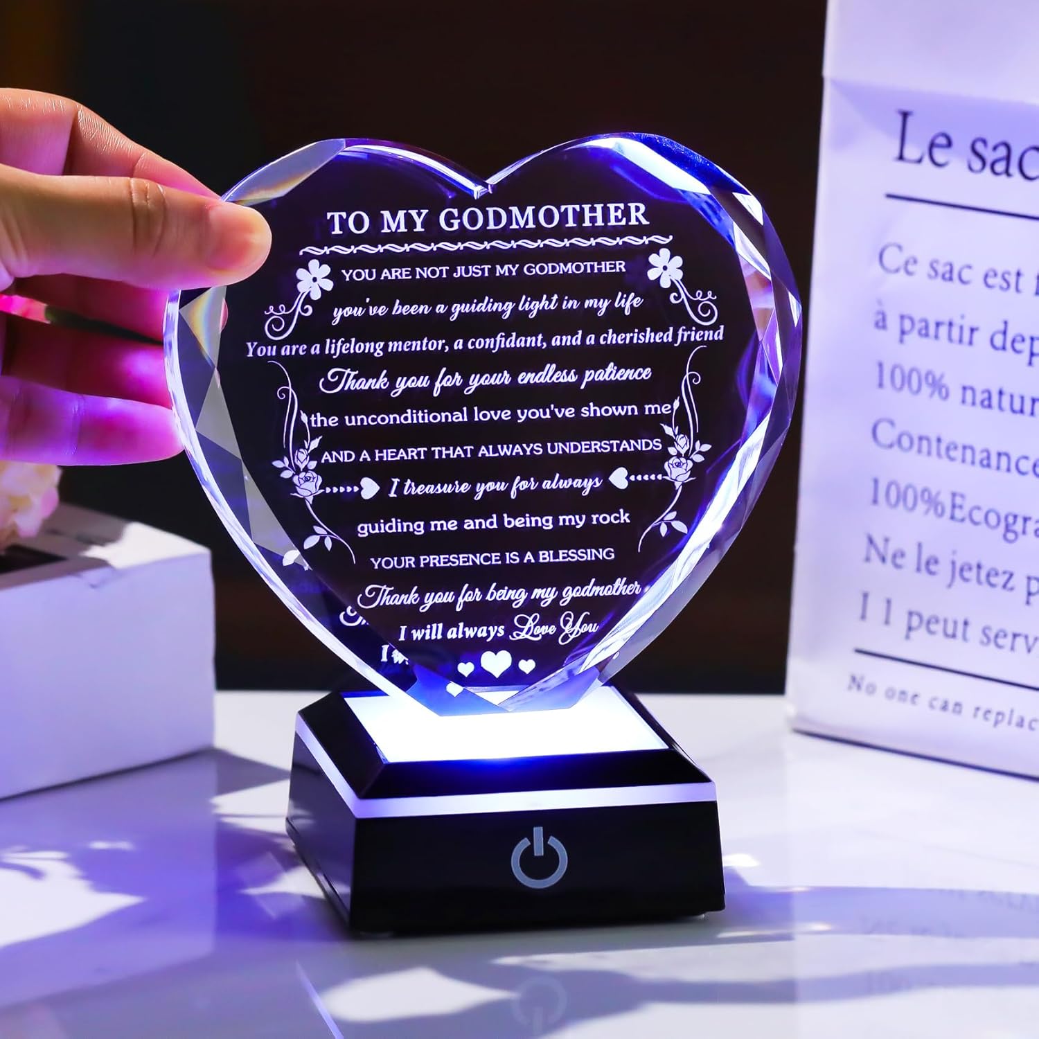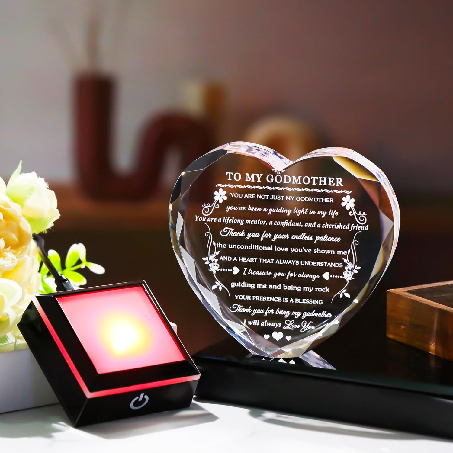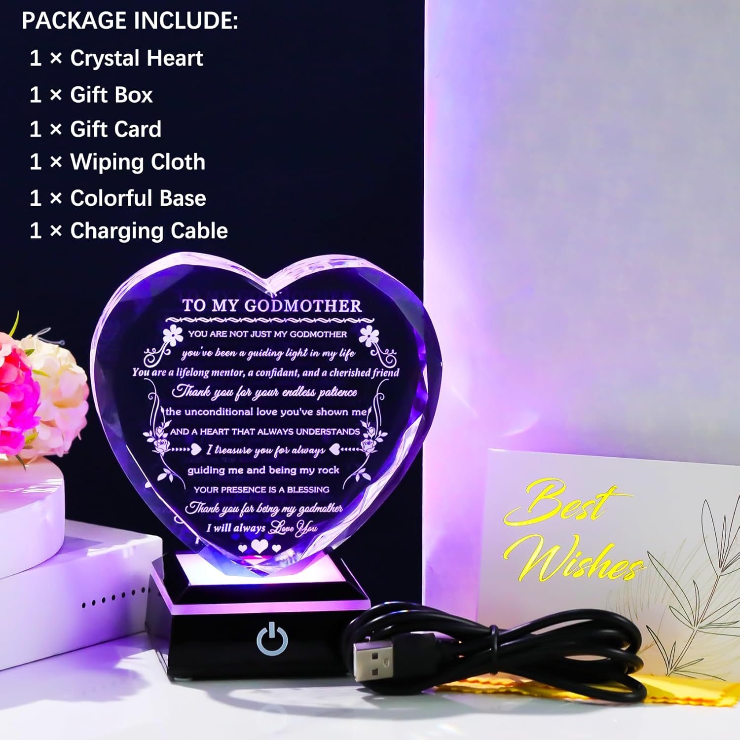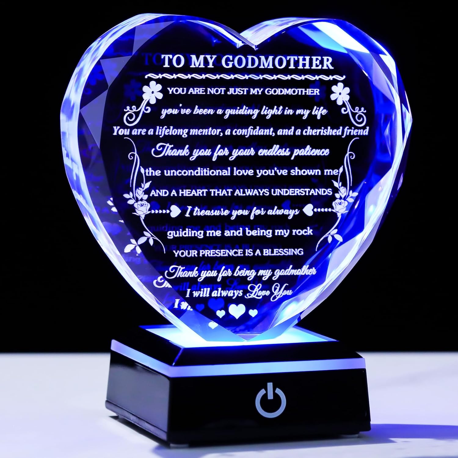 Godmother Gift from Godchild with Colorful LED Base Heart Crystal Gifts for Godmother on Birthday Christmas Mothers Day Thanksgiving from Goddaughter Godson