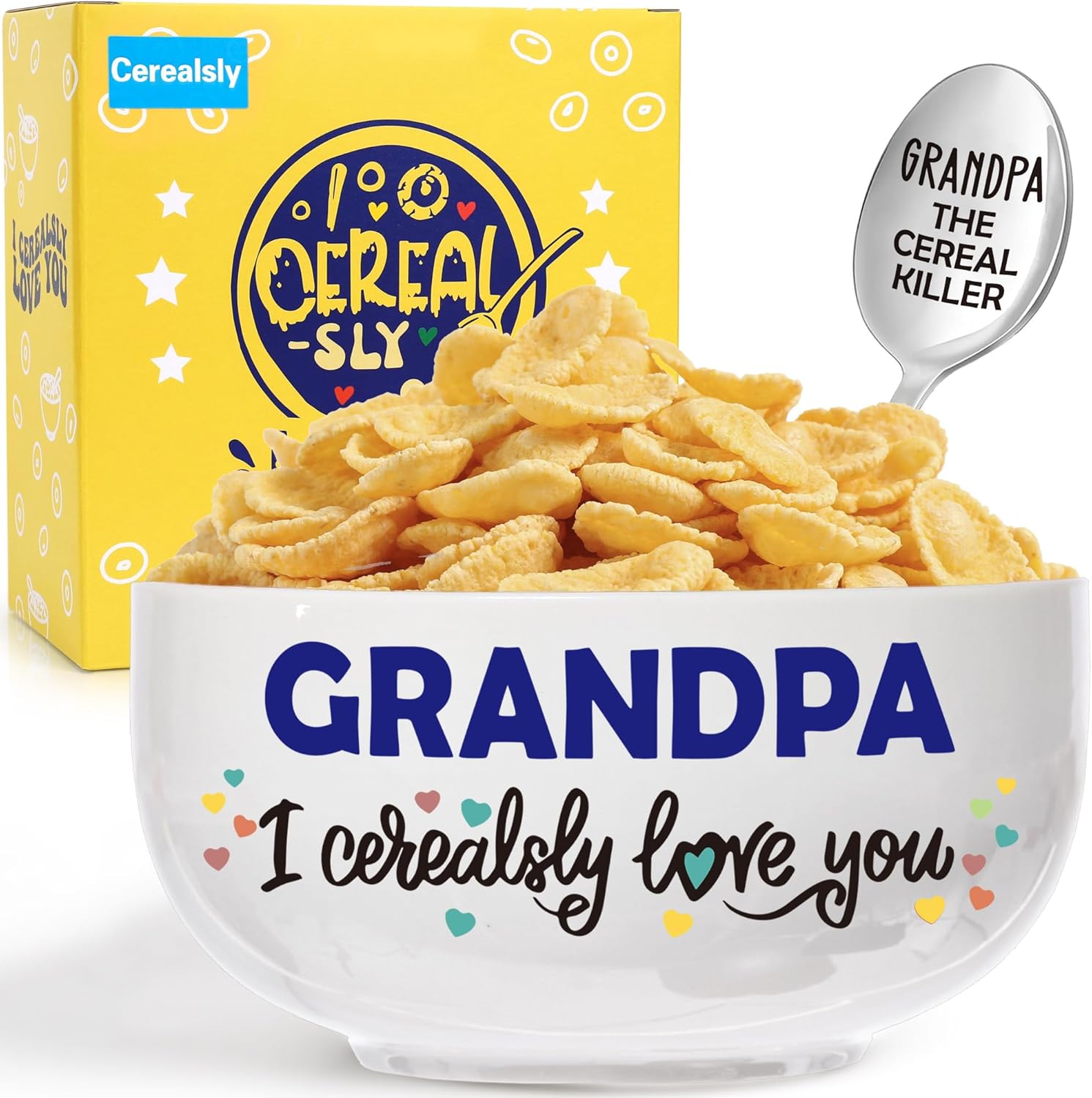 Grandpa Gifts for Fathers Day, Funny Gifts for Grandfather New Grandpa Birthday from Grandkids Granddaughter, Ceramic Cereal Bowl Presents, Grandpa I Cerealsly Love You