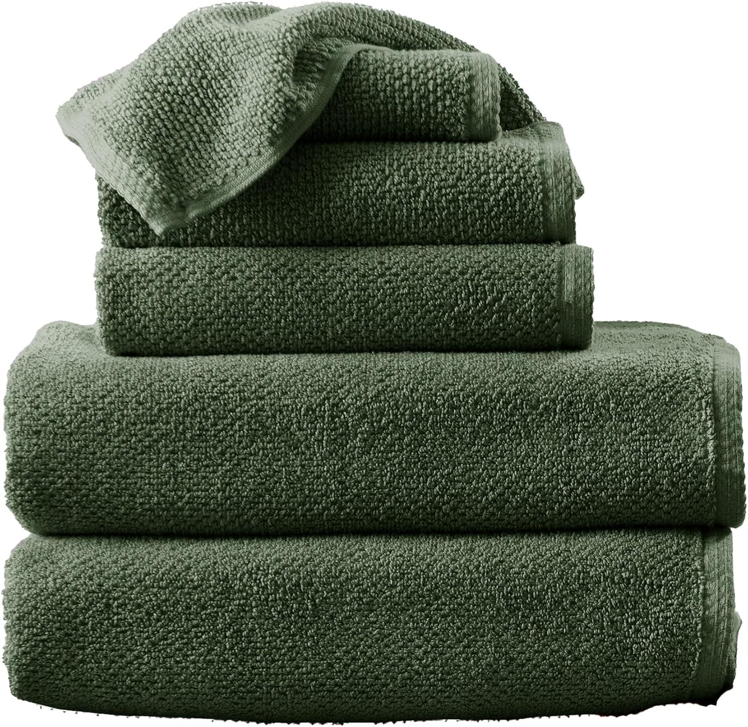 Green Bath Towels - 100% Cotton 6 Piece Towel Set - 2 Bath Towels, 2 Hand Towels, 2 Washcloths - Absorbent, Quick-Drying, Durable Towels for Bathroom Decor - Low-Twist, Two-Ply Fibers (Forest Green)