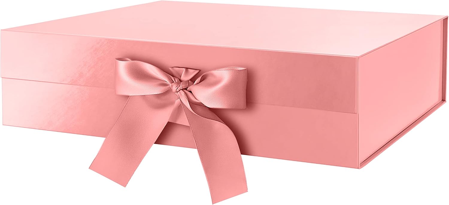 GREEN BEAN Large Gift Box with Lid for Presents 13x9.7x3.4 Inches, Gift Box Rose Gold Magnetic with Ribbon, Bridesmaid Proposal Box Luxury (Glossy Rose Gold)