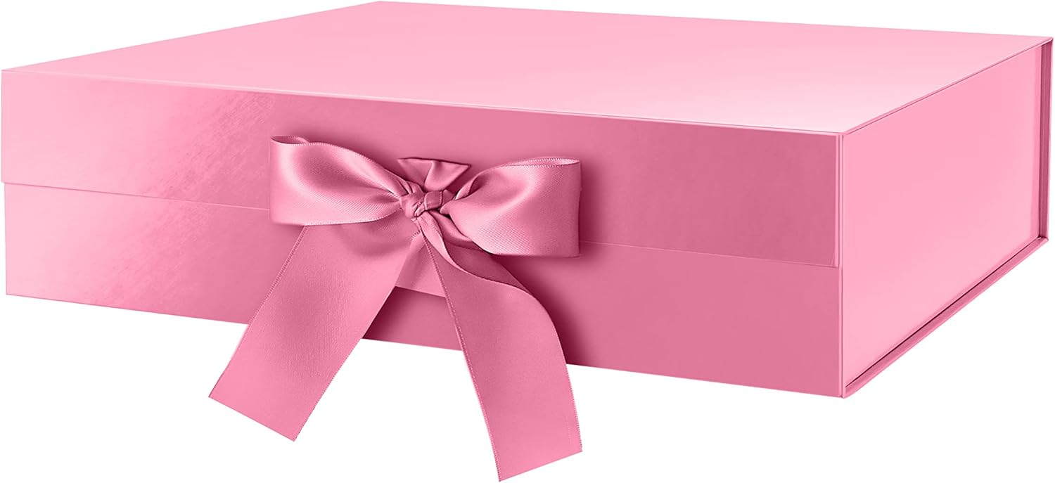 GREEN BEAN Large Gift Box with Lid for Presents 13x9.7x3.4 Inches, Pink Magnetic with Ribbon Luxury Gift Box, Bridesmaid Proposal Box (Glossy Pink)