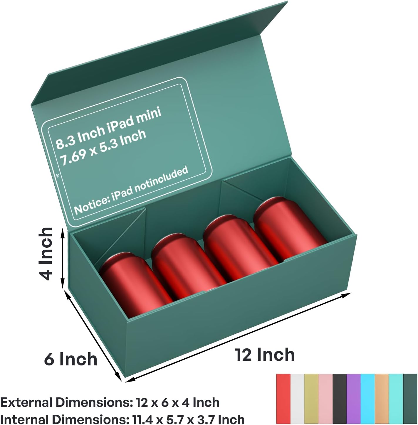 🎁SlZE - Gift boxes for presents External dimensiong 12x6x4 inches (Internaldimensions are 11.4x5.7x3.7 inches),Collapsible gift box can holdchocolates, candies, cosmetics, perfumes, jewelry, candles, cups, souvenirs orsmaller clothing accessories and more.(all dimensions are measured manuallywith deviation (range) at 0-0.2 inches)