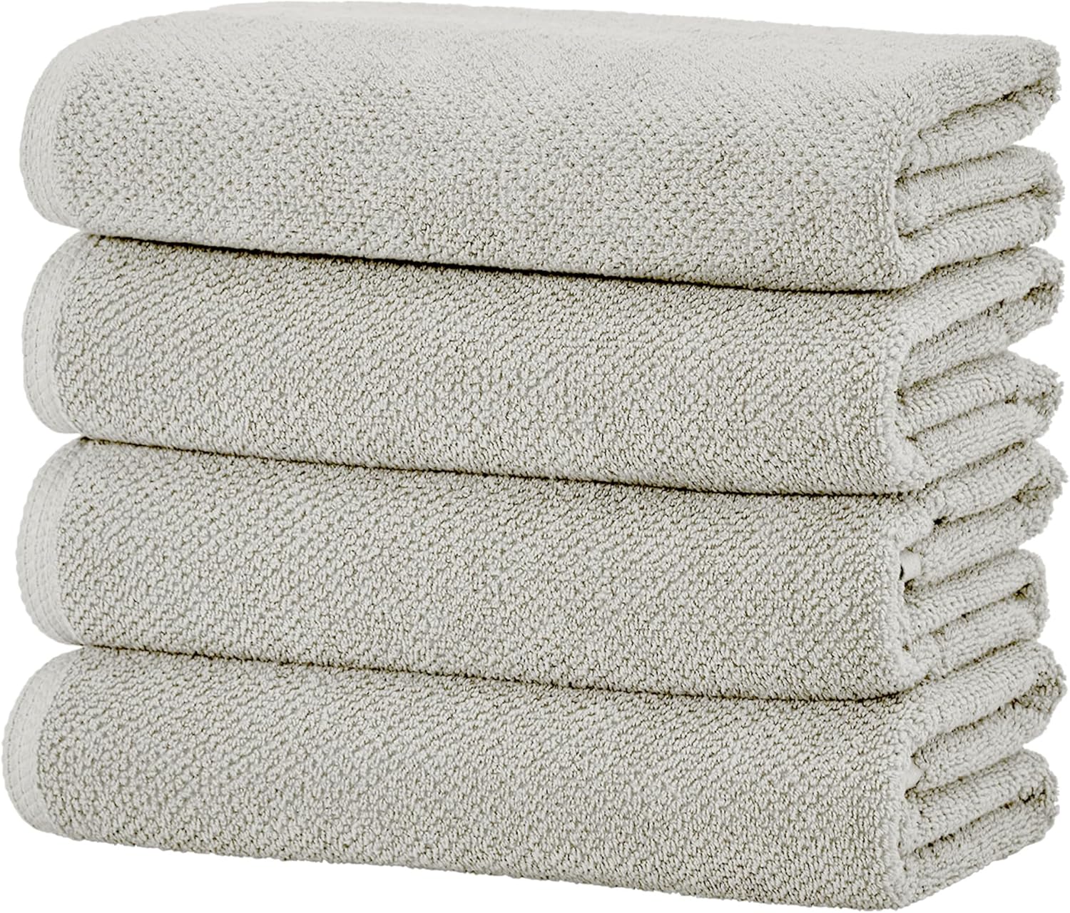 Grey Bath Towels - 100% Cotton 4 Pack 54x27 Bath Towel Set - Absorbent, Quick-Drying, Durable Towels for Bathroom Decor - Low-Twist, Two-Ply Fibers (Light Grey)