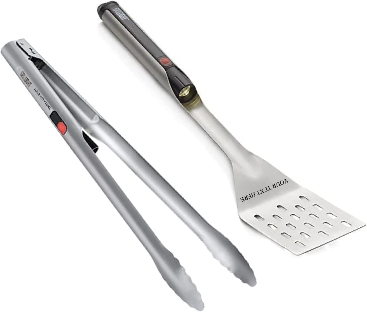 Grill Light 2-Piece Stainless Steel LED Spatula & Tong BBQ Grilling Set - Personalized, Engraved