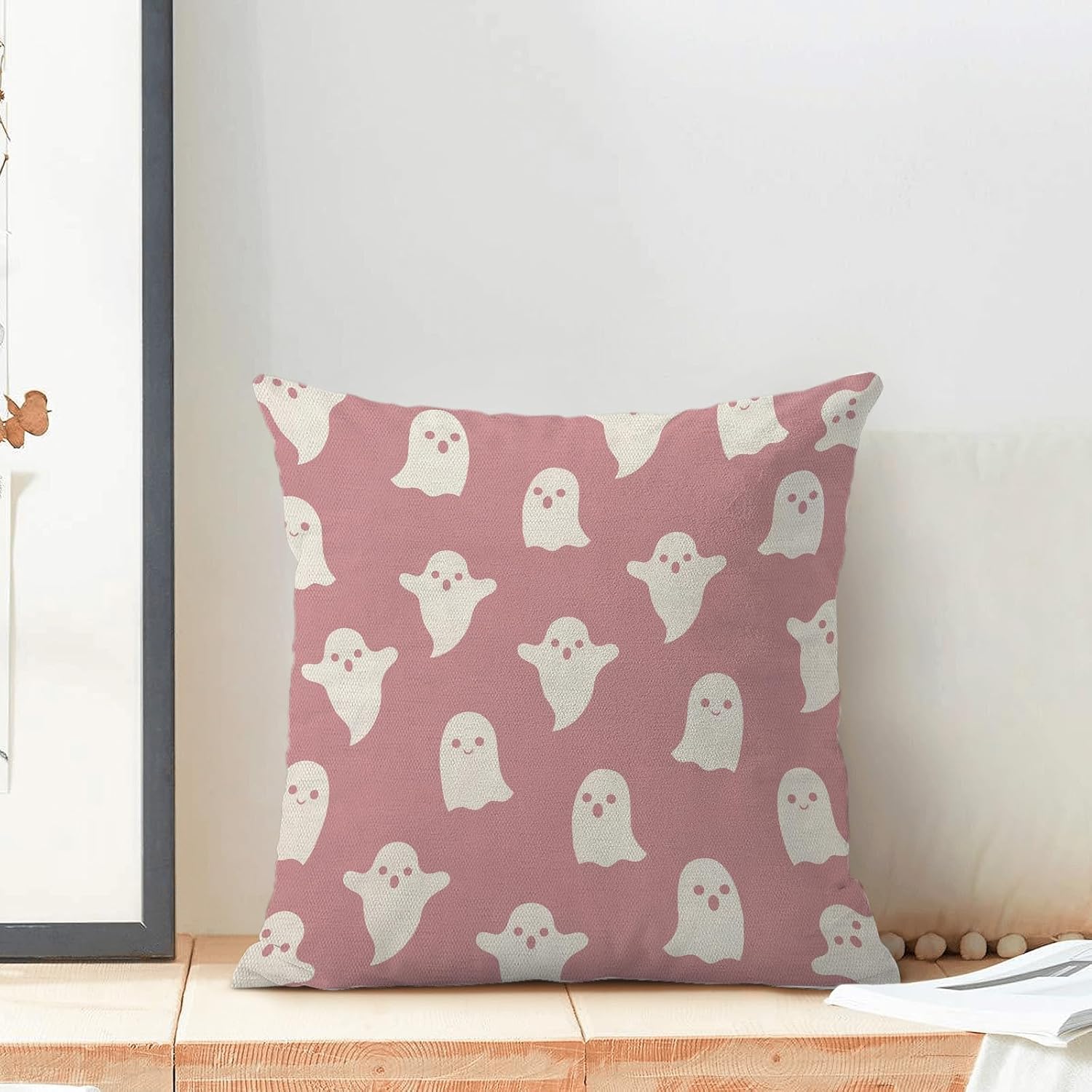 Halloween Decor Pillow Covers 18x18 Set Of 2 Pink Cute Ghost Throw Pillow Covers Halloween Decoration Pillow Covers For Halloween Home Decorative Linen Cushion Case For Home Couch Sofa Outdoor