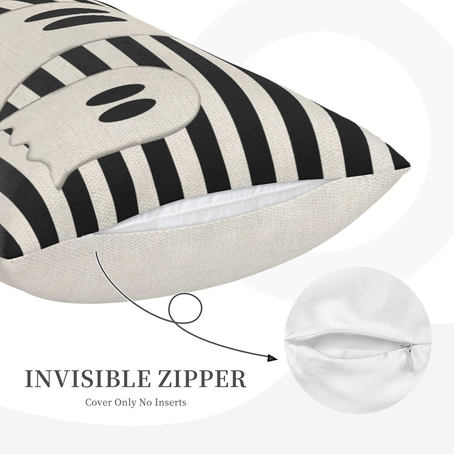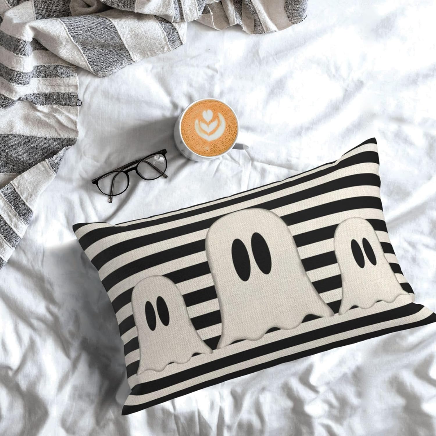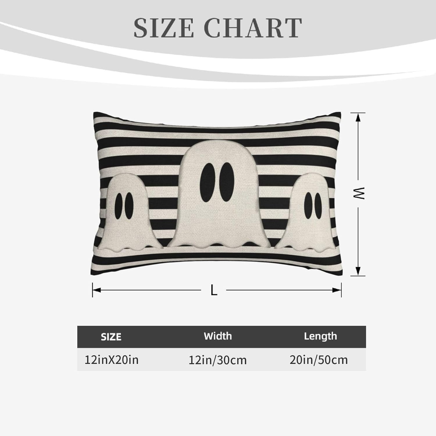 Halloween Pillow Covers 12x20 Set of 2 Black Stripe Cute Ghost Throw Pillcase Decorative Cushion Case for Couch Sofa Outdoor Decor