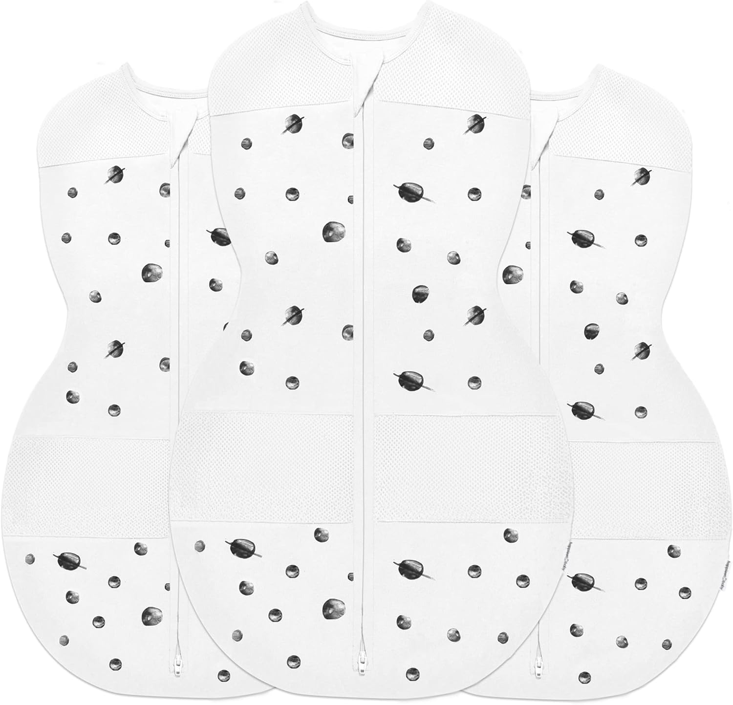 Happiest Baby Sleepea 5-Second Swaddle - 100% Organic Cotton Baby Swaddle Blanket - Doctor Designed Promotes Healthy Hip Development - 3-Pack Bundle (Ivory Planets, S, M, L)