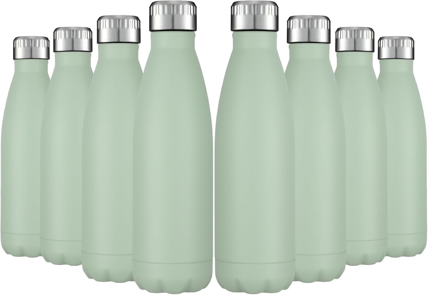 HASLE OUTFITTERS 17oz Stainless Steel Water Bottles Bulk, Vacuum Insulated Water Bottles Double Walled Powder Coated Reusable Metal Sports Water Bottles Keep Drinks Hot and Cold, Light Green, 8Packs