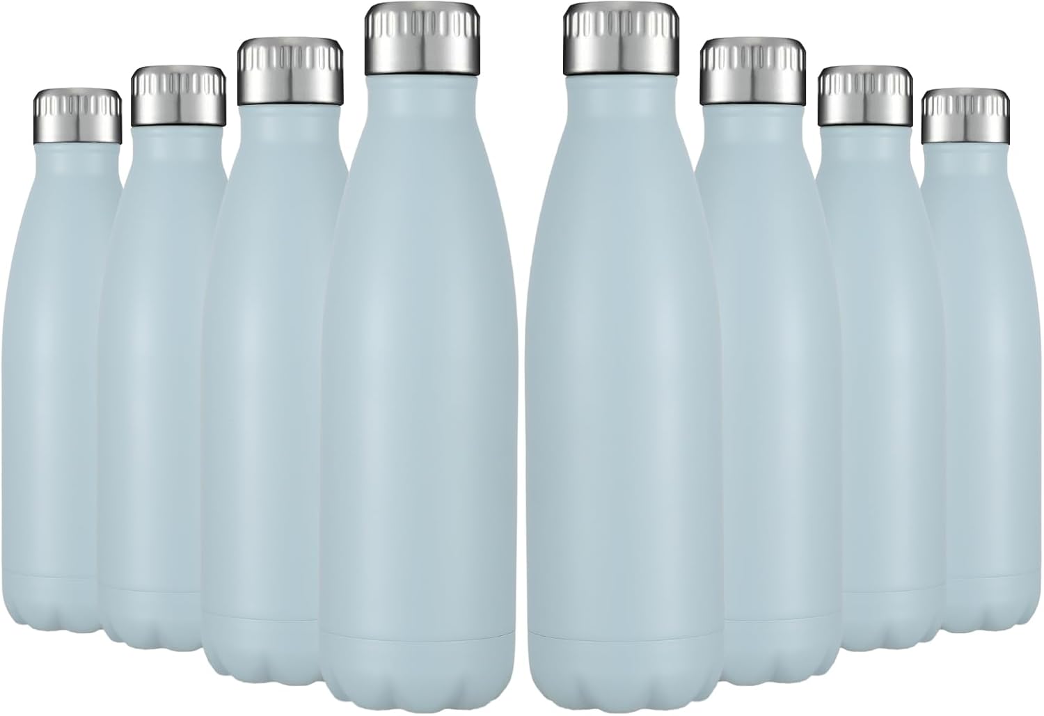 HASLE OUTFITTERS 17oz Stainless Steel Water Bottles Bulk, Vacuum Insulated Water Bottles Double Walled Reusable Metal Sports Water Bottles Keep Drinks Hot and Cold, Light Blue, 8Packs