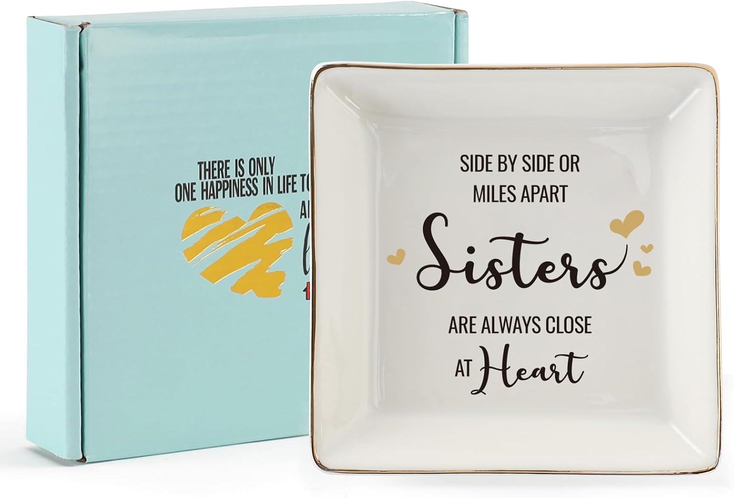 [Excellent Design and Refine Details] Crafted from great quality glazed ceramic with square shape ring dish and gold trim,Well packed with white box.