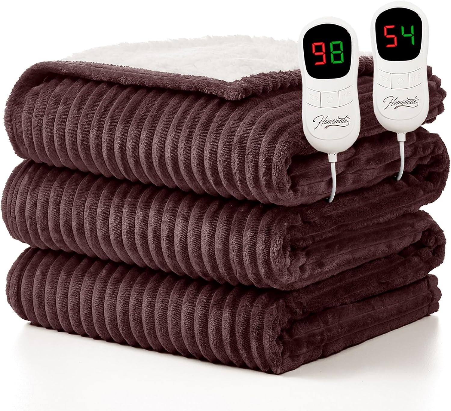 Homemate Electric Heated Blanket King Size - 100"x90" Heating Blanket King Size Dual Control 1/2/4/6/8 Hours Auto-Off 10 Heat Level Over-Heat Protection Soft Flannel Sherpa ETL Certification