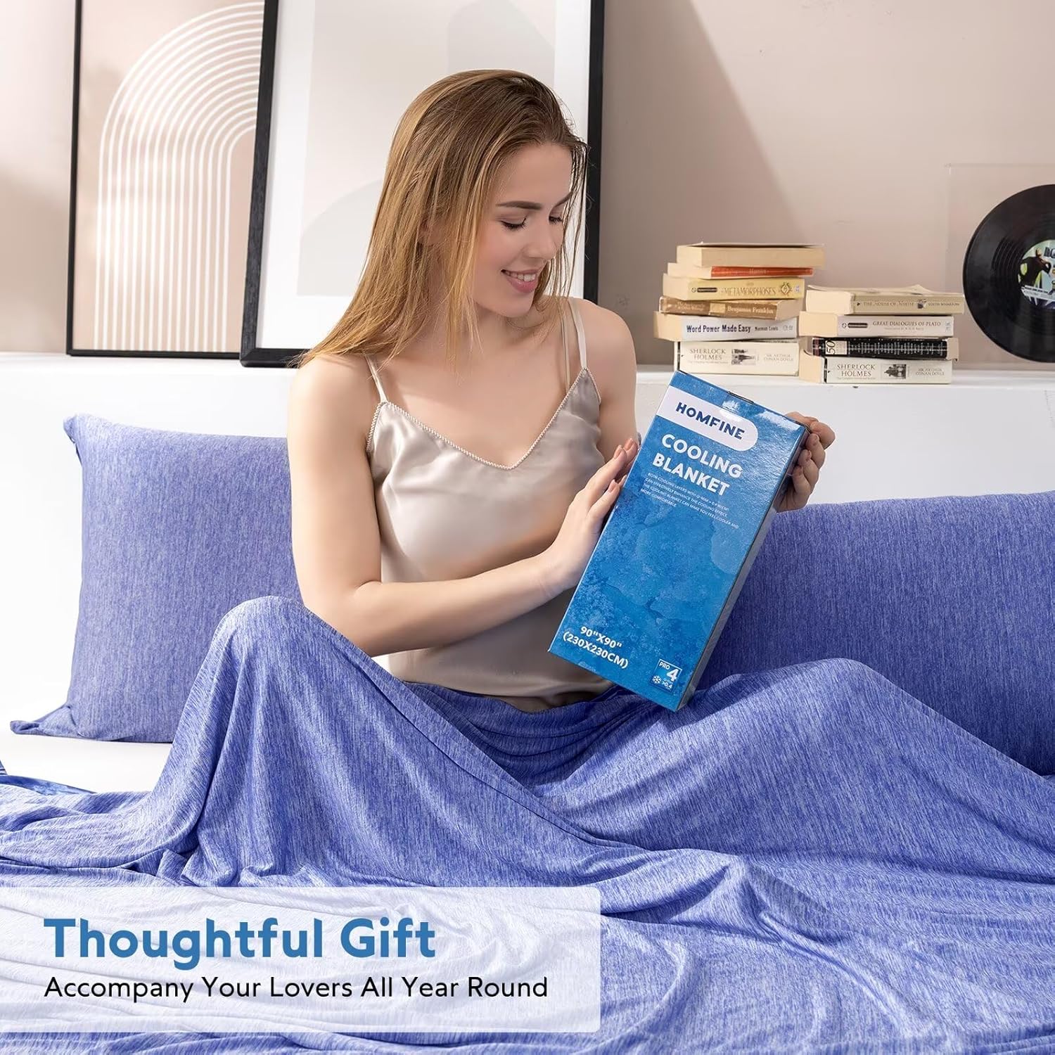 Cooling Blankets for Hot Sleepers: HOMFINE cooling blanket queen are made of the latest Japanese Q-Max>0.439, far exceeding other fibers, specially designed for restless nights. This material does a great job of absorbing your body heat and feel cool